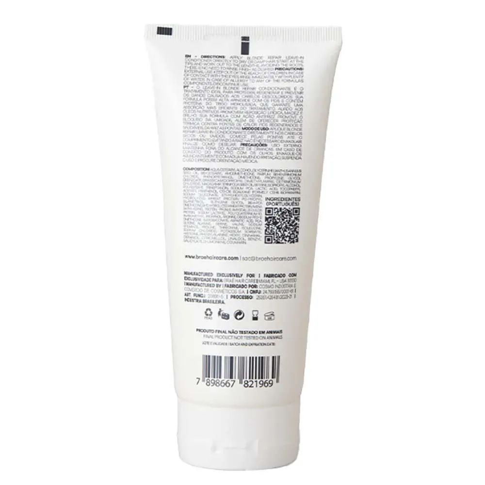 O Leave-in Blonde Repair da Braé é um condicionante sem enxágue, desenvolvido para nutrir e fortalecer cabelos loiros ou descoloridos. Ele serve para proteger os fios das agressões diárias, como poluição, calor de ferramentas térmicas e radiação UV, além de proporcionar hidratação profunda e duradoura. Este produto é ideal para quem busca manter os cabelos sempre saudáveis, sedosos e com um brilho radiante, sem comprometer a cor.
