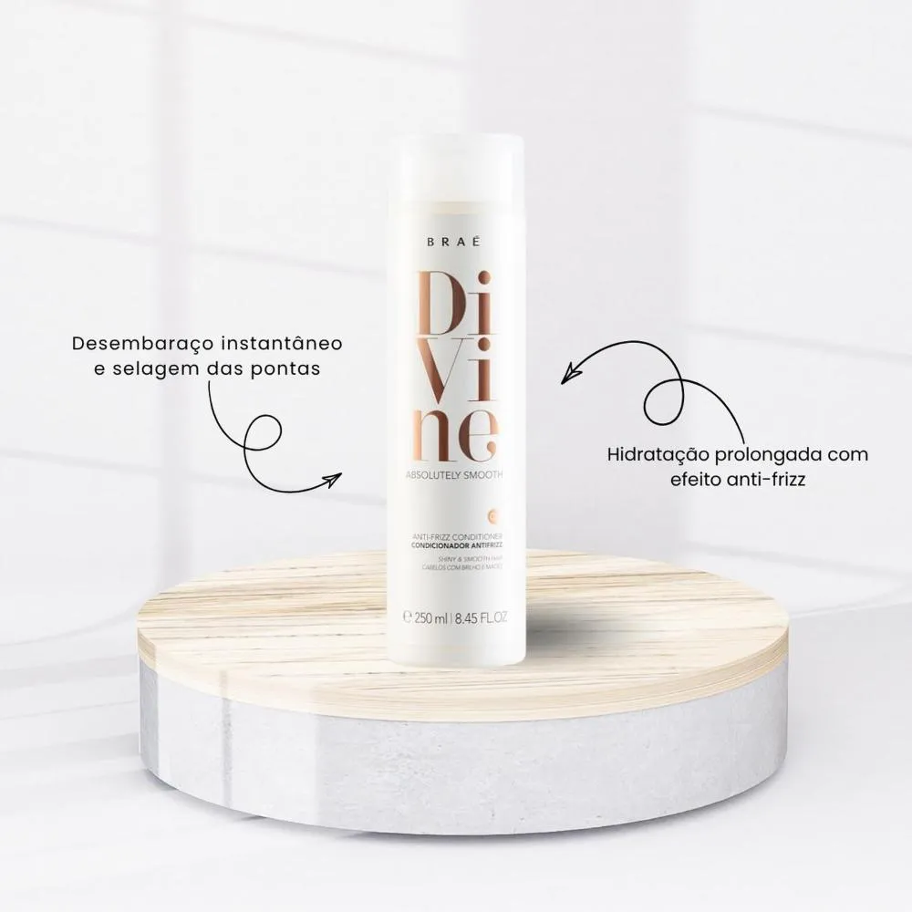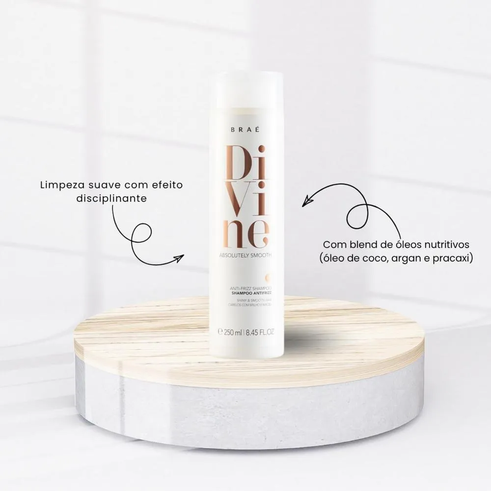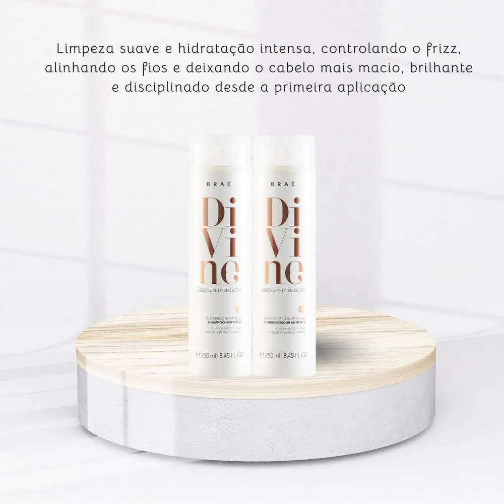 A linha Divine BRAÉ foi desenvolvida para quem busca fios sedosos, macios e totalmente livres de frizz. Ideal para cabelos secos e com frizz, Divine é a solução completa para um cabelo mais saudável e blindado contra a umidade. Diga adeus ao frizz e transforme seus cabelos com a poderosa linha de tratamento BRAÉ Divine! Divine Shampoo: criado para limpar suavemente enquanto devolve a hidratação que seu cabelo precisa. Livre de frizz e com muito mais maciez, seus fios estarão sempre prontos para arrasar no dia a dia. Shampoo que limpa e hidrata ao mesmo tempo? Sim, é possível! Divine Condicionador: criado para proteger os fios contra a umidade, mantendo seu cabelo intensamente hidratado, macio e sem frizz. A solução perfeita para um tratamento diário completo. Diga adeus ao frizz com fios hidratados e sedosos!Indicação: