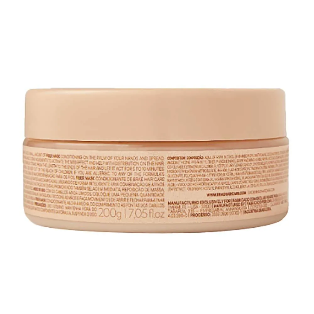 - Reparação Intensiva: A Fiber Mask Condicionante penetra profundamente na fibra capilar, promovendo a regeneração dos fios danificados por processos químicos e agressões externas.