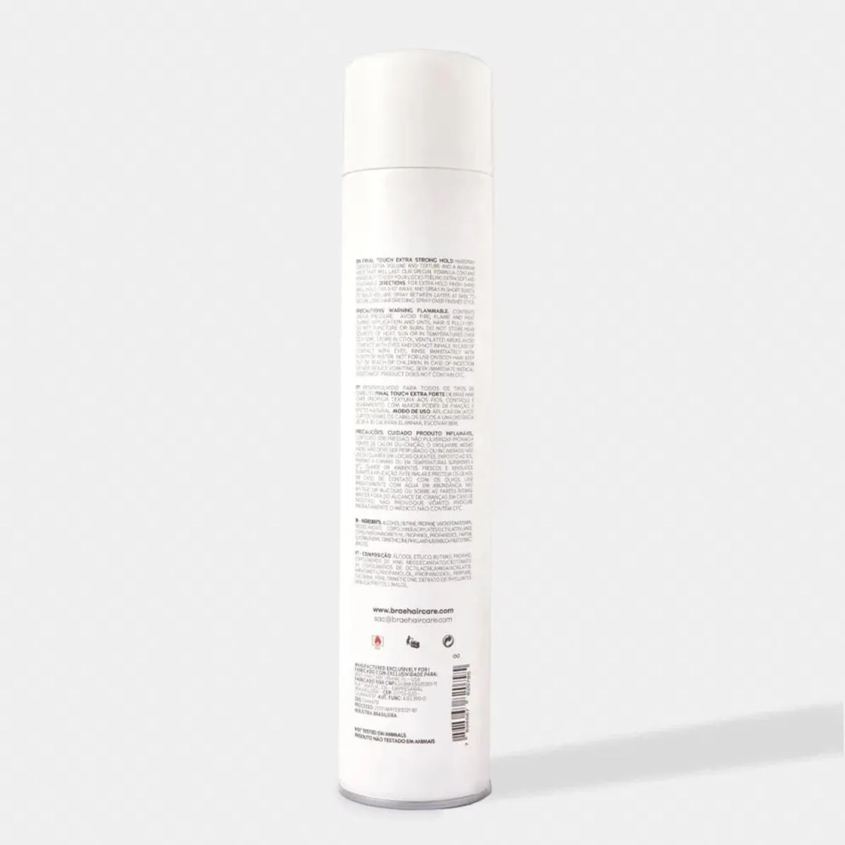 Braé Final Touch Finalizador spray 400ml é um spray de fixação flexível que garante acabamento profissional, brilho intenso e controle do frizz, mantendo o penteado impecável por muito mais tempo. Ideal para uso diário ou finalizações elaboradas, proporciona leveza, movimento natural e proteção contra a umidade, sem deixar resíduos ou rigidez.