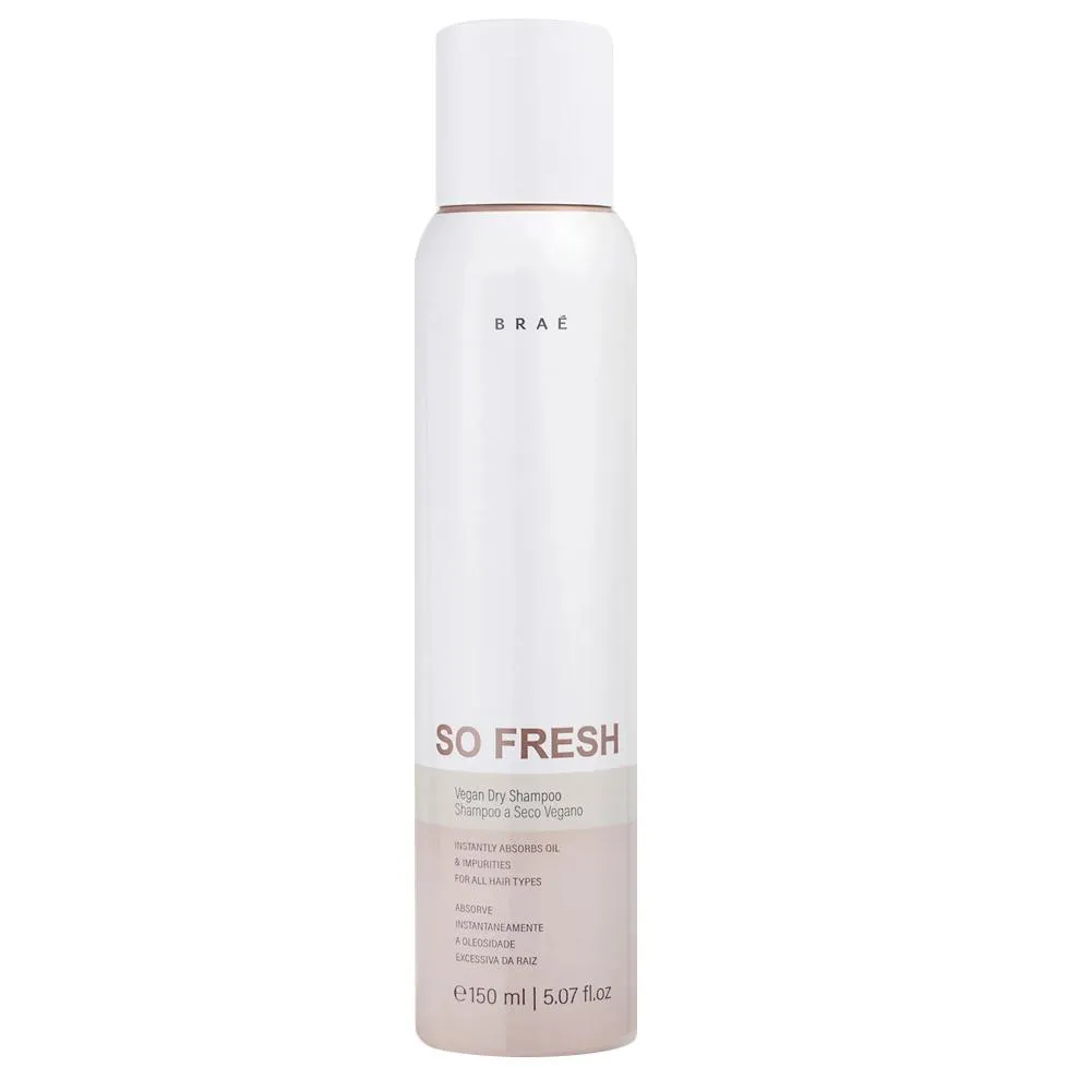 Aplique o shampoo sobre os cabelos molhados e massageie o couro cabeludo até a formação de uma espuma cremosa. Enxágue bem e reaplique o produto. Enxágue novamente. Depois, aplique o condicionador e massageie suavemente. Deslize os dedos entre os fios para penteador e faça uma pequena pausa para o produto agir intensamente. Enxágue totalmente. BRAÉ So Fresh - Shampoo a Seco Vegano 150mlShampoo a seco vegano para todos os tipos de cabelos que sofrem com oleosidade, limpa instantaneamente o couro cabeludo e os fios, sem deixar resíduos esbranquiçados quando aplicado no couro cabeludo e nos fios. Conselho de aplicação Agite bem antes de cada aplicação. Posicione o jato a 30cm dos cabelos e pulverize uniformemente sobre os fios em direção à raiz. Massageie a raiz com as pontas dos dedos e escove para eliminar o excesso. Reaplicar se necessário.