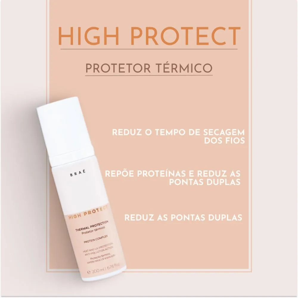 Braé High Protect Thermal Protection Leave-in Condicionante 200mlLeave-in condicionante para todos os tipos de cabelos. Braé High Protect Thermal Protection proteção diária que reforça a estrutura da fibra capilar e evita danos causados por agentes externos.O Leave-in Condicionante Braé High Protect Thermal Protection garante proteção contra choques térmicos (de até 230°) causados pelo uso de fontes de calor, como secadores e modeladores, além de reduzir o tempo de secagem do cabelo e proteger contra ação de raios UV e poluição.