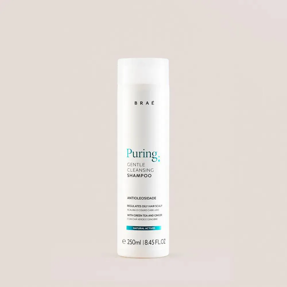 Braé Puring Antioleosidade higieniza, protege do ressecamento e acalma o couro cabeludo. O