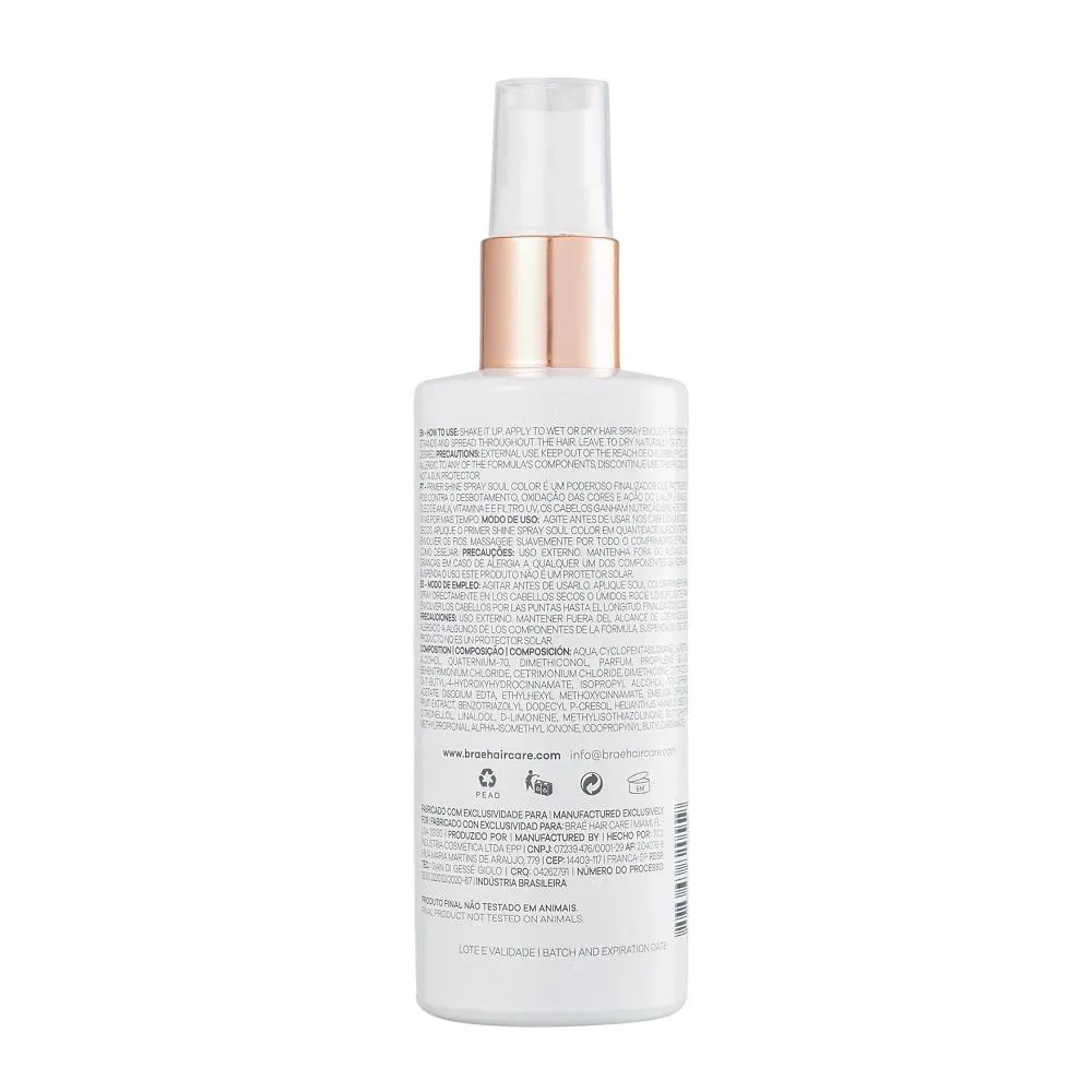 BRAÉ Soul Color Primer Shine spray - Leave-In 100ml: Com proteção térmica e UV, cuidando da cor e hidratação. Indicado para fios de espessura média à grossa.