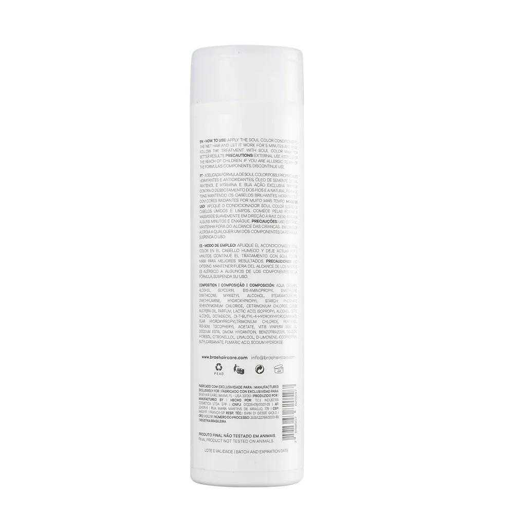 BRAÉ Soul Color - condicionador 250ml: hidratante e desembaraçante, desenvolvido especialmente para cabelos coloridos ou com mechas, ajuda na proteção da cor e nos cuidados dos cabelos, deixando os fios leves e com muito movimento.