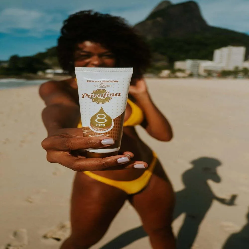 Bronzeador Parafina Bronze FPS 8 com Cera de Abelha – 120 g O Bronzeador Parafina Bronze combina bronzeado, proteção e hidratação em uma única fórmula. Com FPS 8, oferece proteção contra os raios UVB, ajudando a prevenir queimaduras e intensificando o bronzeado para um tom dourado e uniforme. Enriquecido com cera de abelha e óleos emolientes, proporciona hidratação profunda, mantendo a pele macia e evitando ressecamento e descamação após a exposição solar. Sua fragrância suave de coco confere uma experiência sensorial agradável durante o uso. Características principais: - FPS 8: proteção contra raios UVB e auxílio na prevenção do envelhecimento precoce causado pelos raios UVA. - Hidratação: ação da cera de abelha e componentes oleosos que preservam a maciez da pele. - Bronzeado dourado e duradouro, sem promover queimaduras quando usado conforme indicado. - Embalagem prática: bisnaga de 120 g, fácil de aplicar e transportar. - Não testado em animais. Modo de uso: Aplique generosamente sobre a pele seca e limpa nas áreas expostas ao sol, 30 minutos antes da exposição. Reaplique sempre que necessário, especialmente após nadar, secar-se com toalha, sudorese intensa ou exposição prolongada ao sol. Precauções: Evite exposição solar excessiva. Produto destinado ao uso adulto. Não previne insolação. Pode manchar tecidos. Em caso de irritação, suspenda o uso e procure orientação médica. Composição: Parafina, óleo mineral, cera de abelha, filtros solares, conservantes, pigmentos e essência. Informações fiscais e logísticas: NCM: 3304.99.90 | Unidade: un | Origem: 0 (Nacional) Experimente Parafina Bronze e conquiste um bronzeado radiante com hidratação e proteção.
