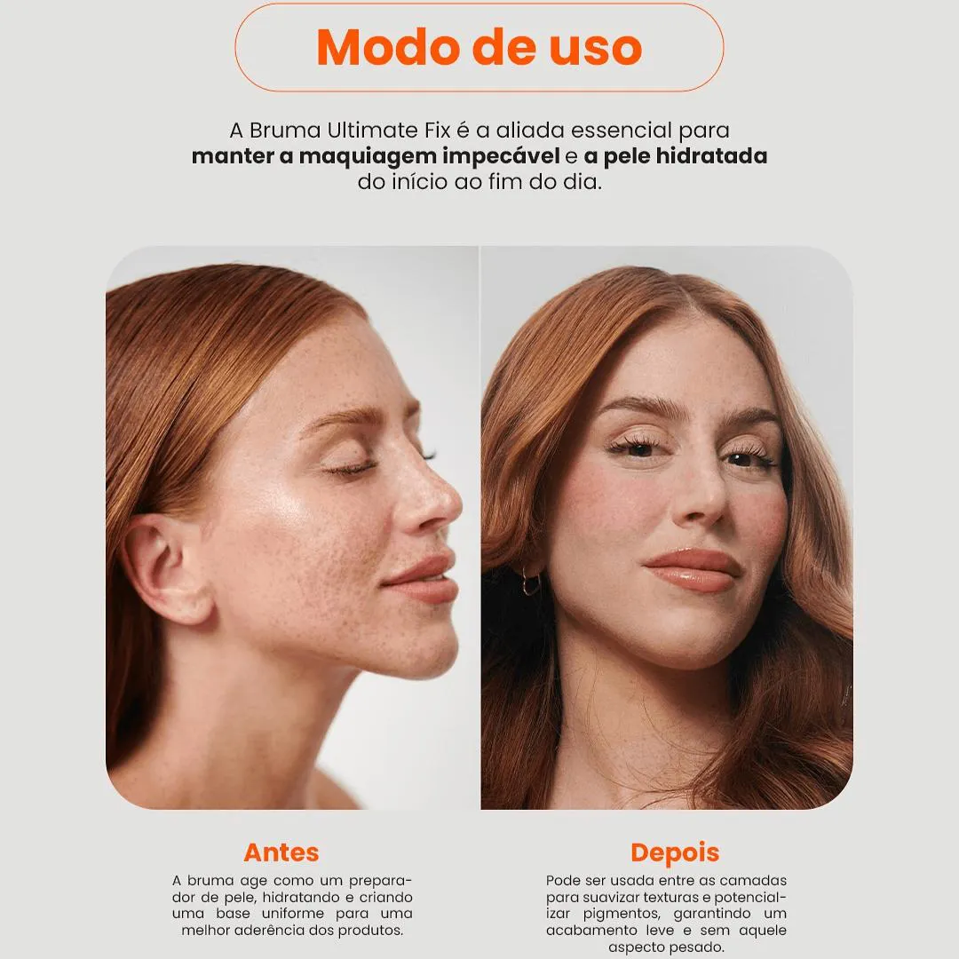 Fixação + Hidratação + Glow Natural A Ultimate Fix da Mari Maria é a bruma ideal para quem quer uma maquiagem duradoura com aquele acabamento impecável e natural que a gente ama! Sua fórmula leve controla o brilho excessivo, fixa a maquiagem por horas e ainda oferece um toque de hidratação com Aloe Vera e Niacinamida, que acalmam e tratam a pele. Perfeita para todos os tipos de pele, inclusive as mais sensíveis. Contém 100ml Benefícios: