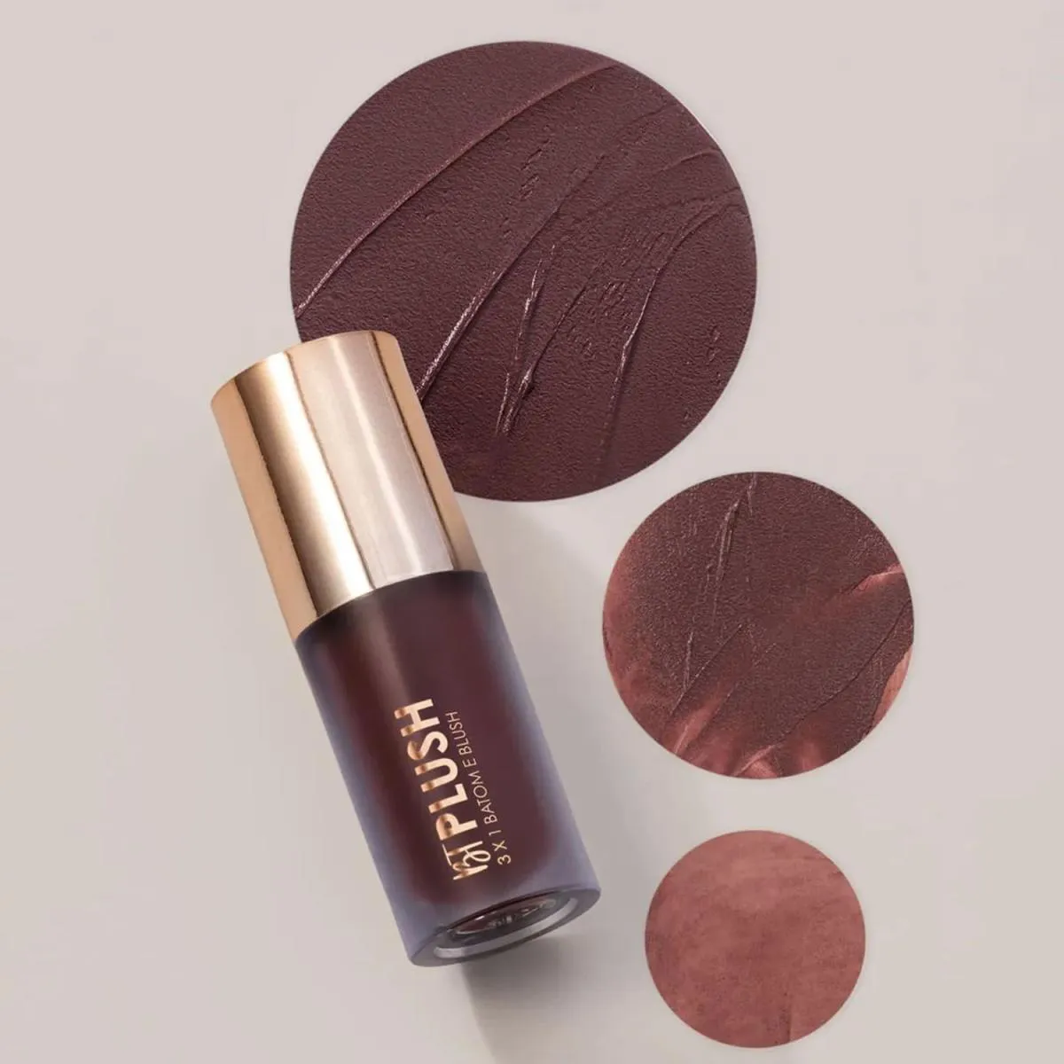 Produto multifuncional, que pode ser usado como blush, batom e sombra. Sua textura mousse cremosa e aveludada desliza facilmente sobre a pele, proporcionando acabamento semi matte suave com efeito blur.