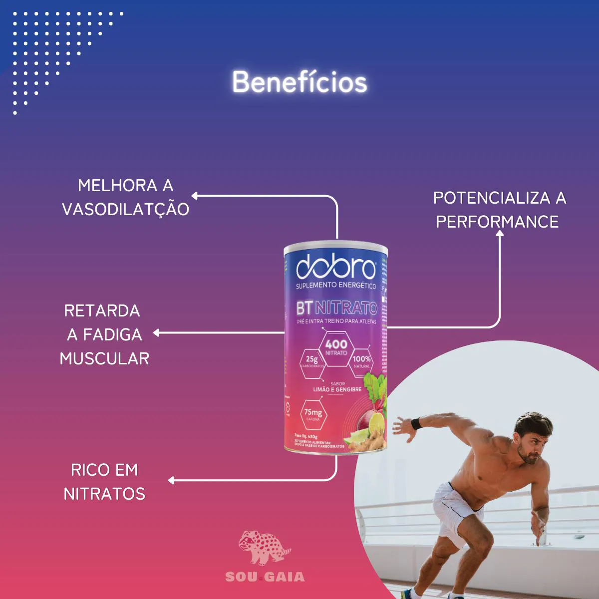 Agora você pode contar com o melhor pré e intra treino, ainda mais brasileiro, com a adição especial de açaí. O BT NITRATO Açaí é um suplemento completo, contendo 26g de carboidratos, 400mg de nitrato proveniente da beterraba e 1000mg de taurina por dose. Sua fórmula exclusiva foi desenvolvida para fornecer doses eficazes de nitrato, beneficiando atletas em seus treinos pré e intra, buscando melhorar a eficiência energética. Além disso, nossa fórmula é vegana, 100% natural, sem glúten, lactose, corantes e conservantes. O BT NITRATO Açaí é a escolha ideal para atletas que buscam um desempenho excepcional.