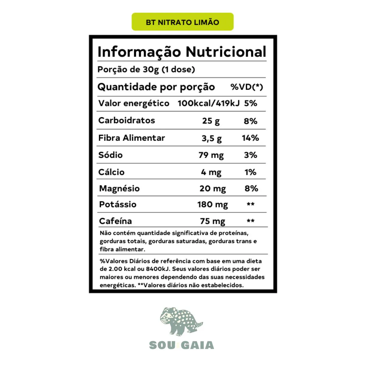 Descubra o poder do BT NITRATO Limão e Gengibre, o suplemento essencial para atletas em busca de alta performance durante seus treinos. Cada dose contém 25g de carboidratos, 400mg de nitrato proveniente da beterraba e 75mg de cafeína natural. Essa fórmula exclusiva foi cuidadosamente desenvolvida para fornecer doses eficazes de nitrato, proporcionando suporte pré e intra treino. Além disso, adicionamos a cafeína e os carboidratos para fornecer uma dose extra de energia. Nossa fórmula é vegana, 100% natural, sem glúten, lactose, corantes e conservantes. Com o BT NITRATO Limão e Gengibre, você elevará seu treinamento a um novo patamar.