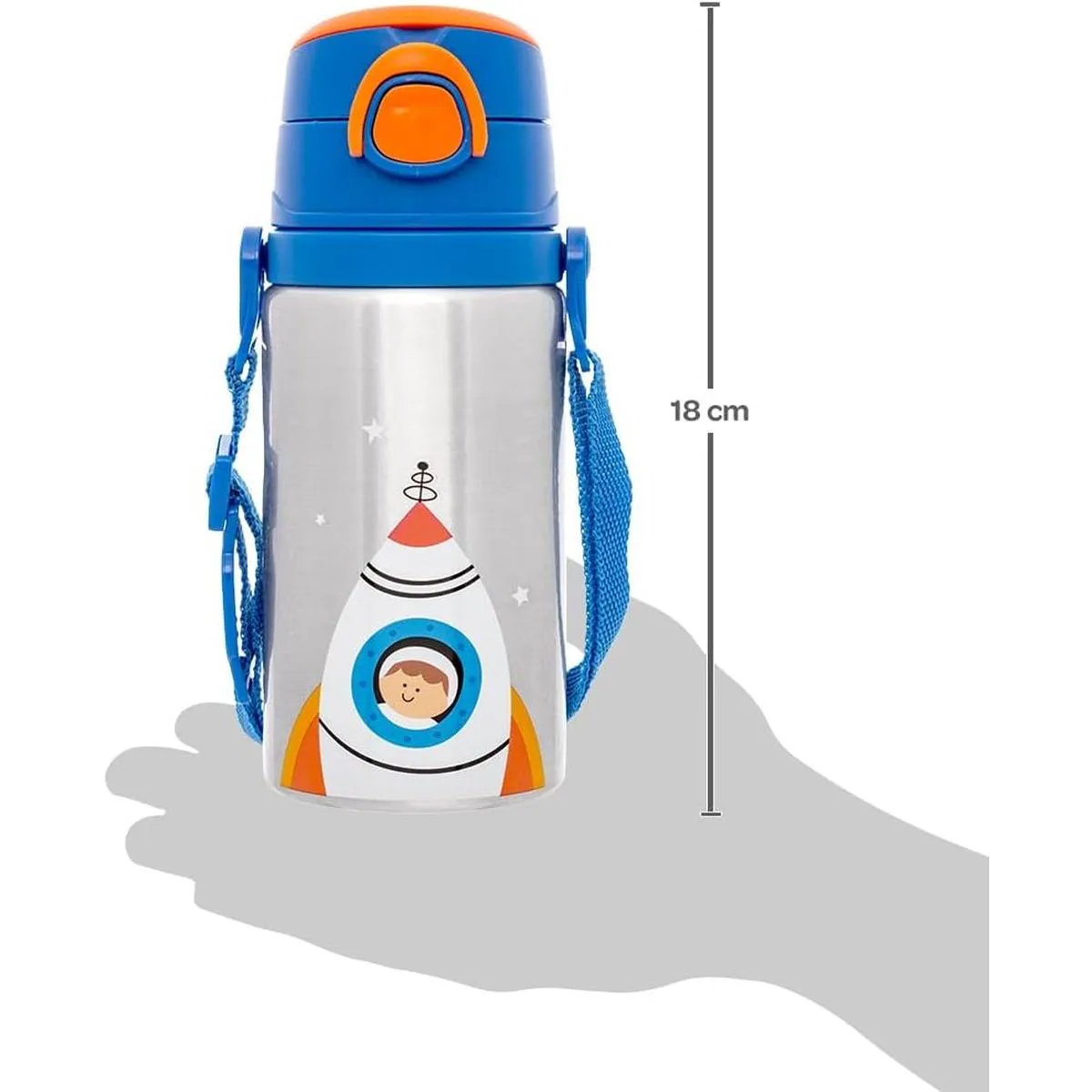 Indicado para crianças a partir de 3 anos (+3 anos). Incentive a hidratação com muita diversão e imaginação com a Garrafinha de Alumínio Aventuras Astronauta Buba — perfeita para pequenas grandes aventuras!