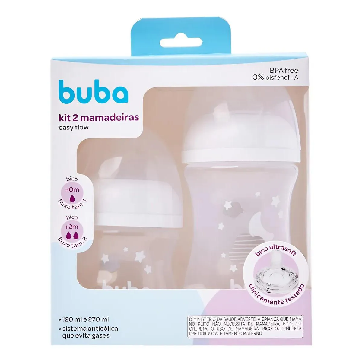 Buba Kit 2 Mamadeiras Easy Flow Nuvem Branca 120Ml e 270Ml (7908103809854)