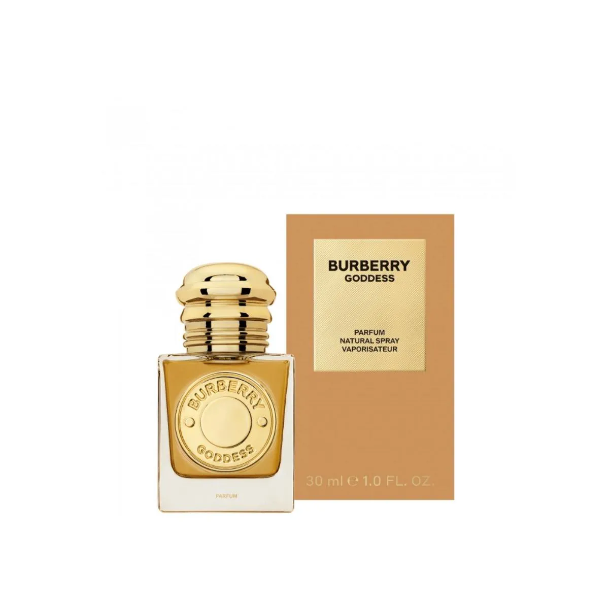 Inspirado pelos tons de um pôr do sol radiante, Burberry Goddess Parfum é apresentado em um frasco de refil quadrado de bronze com elegante embalagem marrom-claro e rótulo dourado, inspirado na icônica gabardine da Burberry. O refil Burberry Goddess Parfum é vendido separadamente.