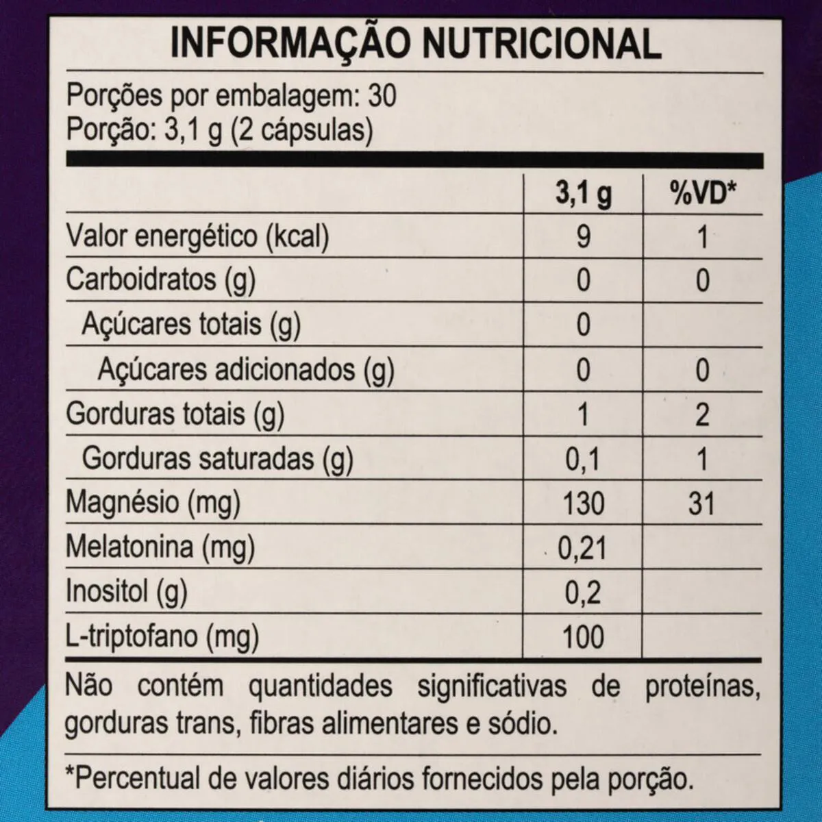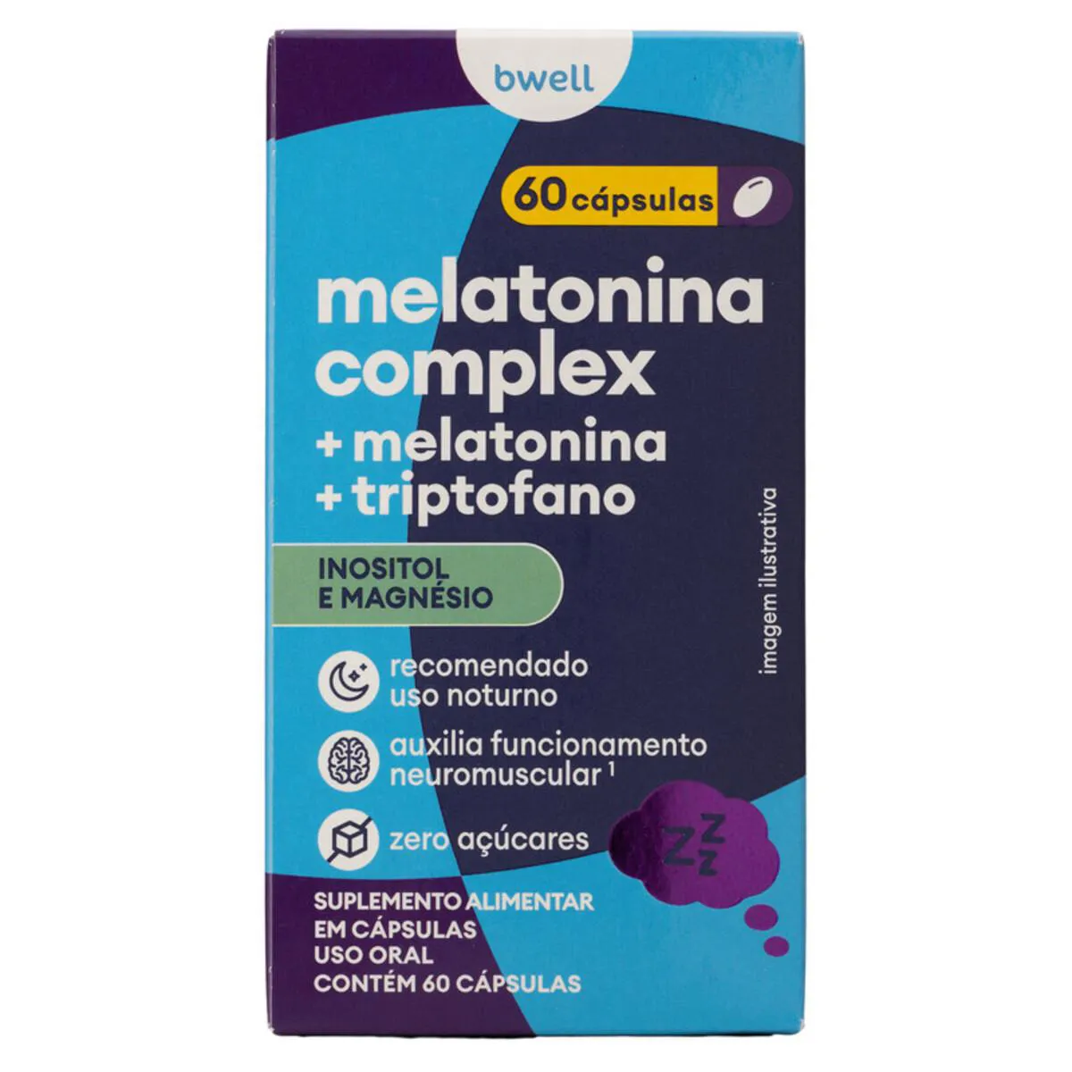 - Suplemento alimentar com melatonina, triptofano, inositol e magnésio.