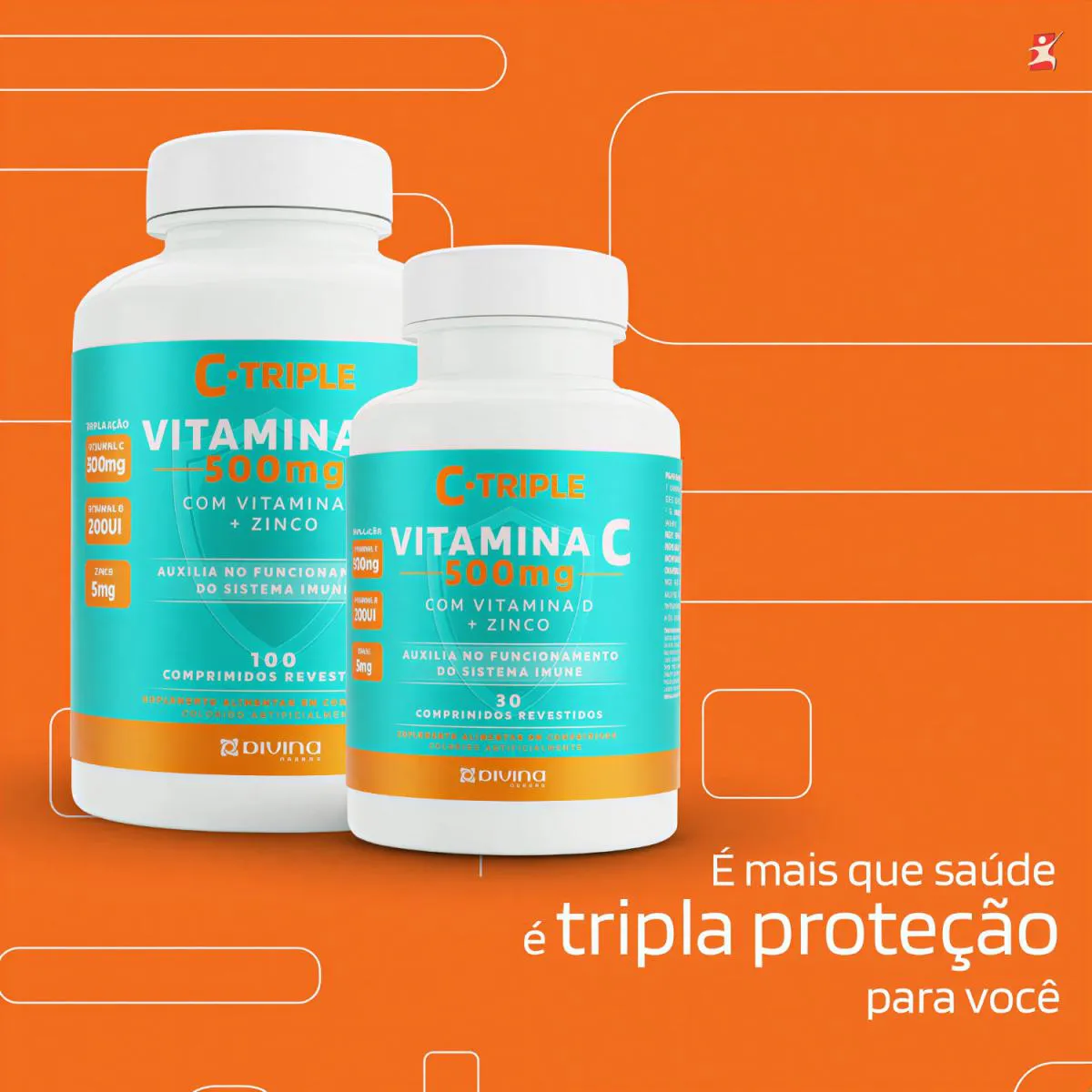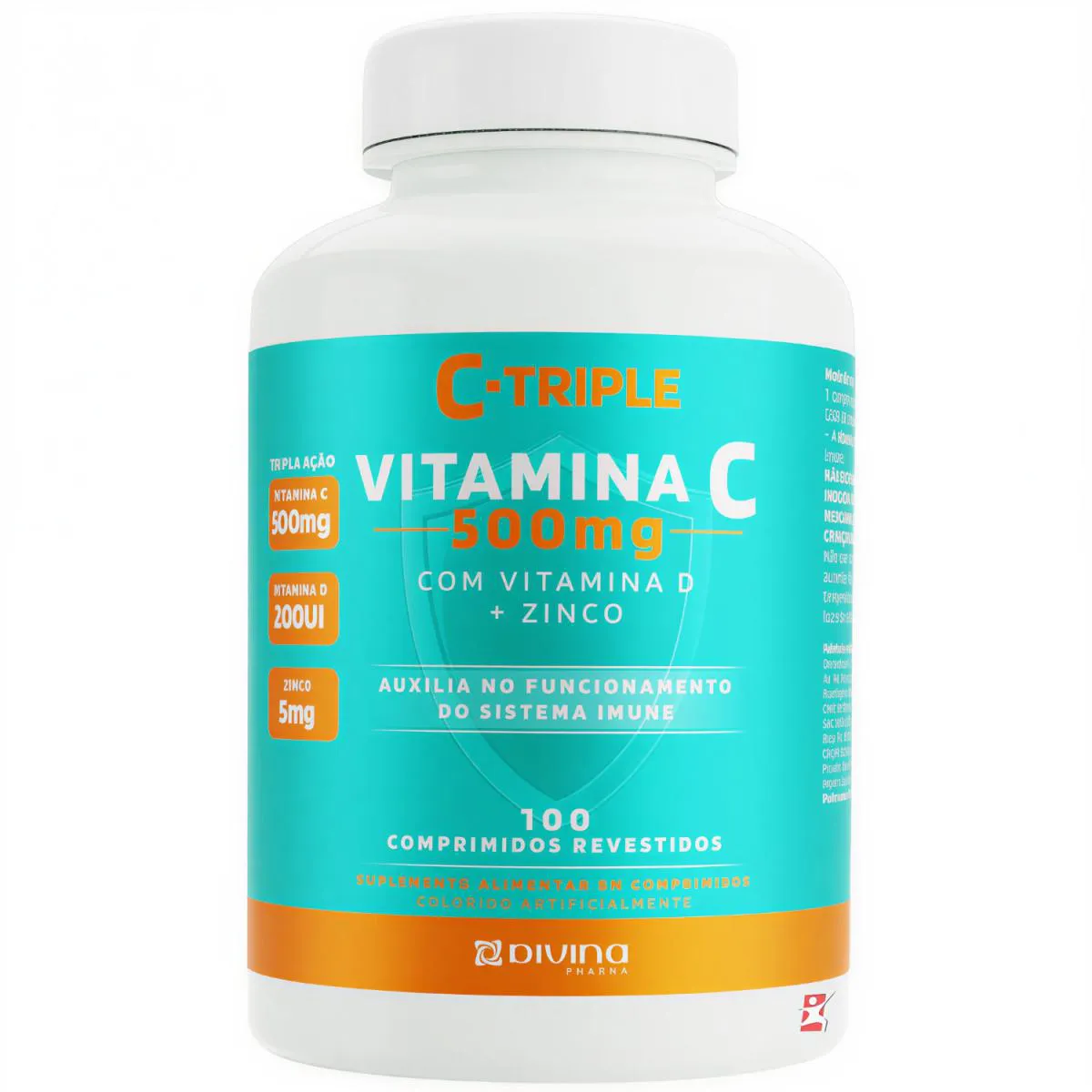 C-Triple Vitamina C 500Mg + Zinco + Vitamina D 100 Comprimidos - Divina Pharma