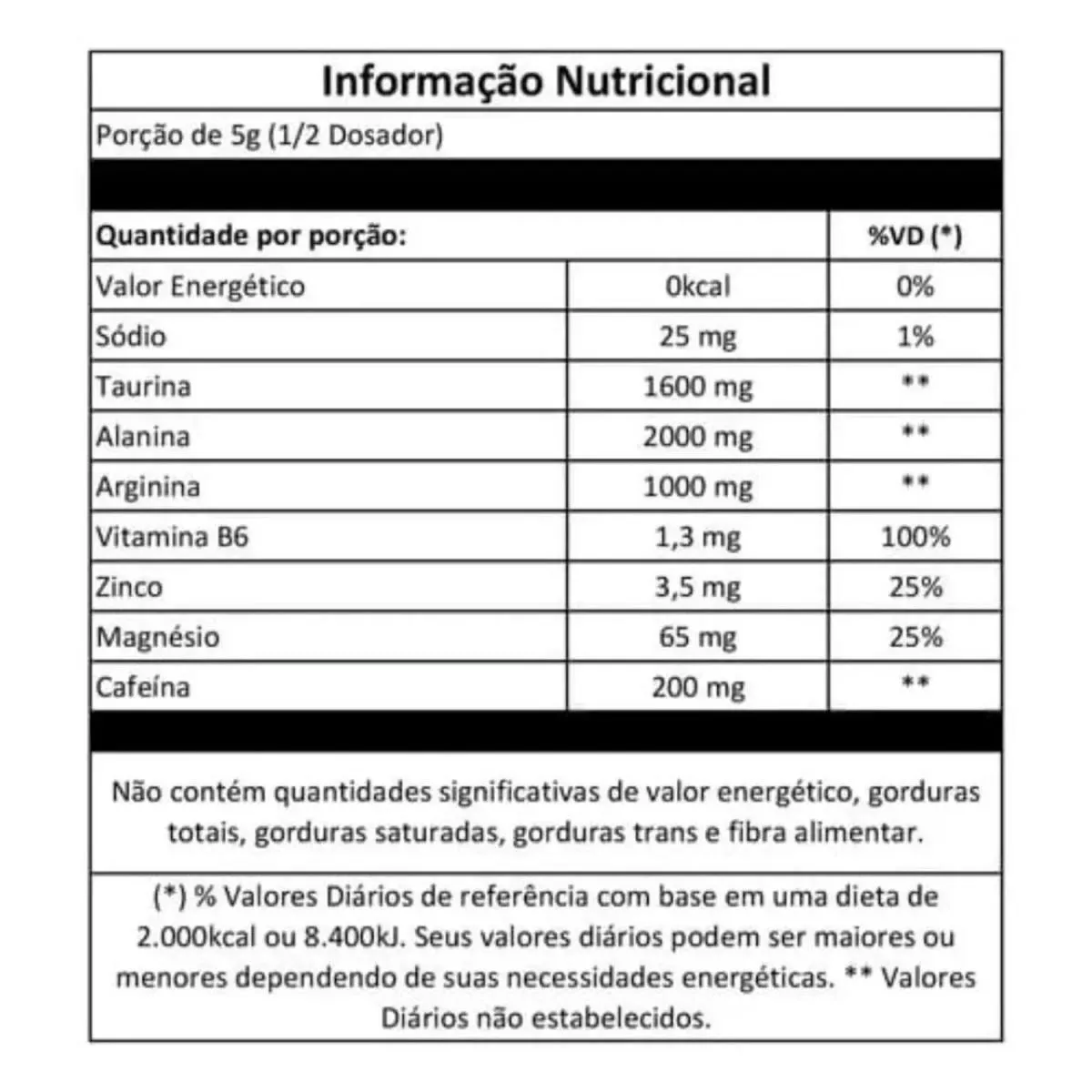 O C4 Beta Pump é um pré-treino altamente concentrado e que prepara seu organismo para um trabalho intenso e desgastante. A suplementação de beta-alanina é efetiva no aumento da concentração de carnosina no músculo, aumentando pH e retardando a fadiga. Além disso possui a Vitamina B6, que auxilia no funcionamento do seu organismo.Como TomarDiluir a medida de 1 scoop em até 400ml de água, preferencialmente gelada.IngredientesFÓRMULA BETA PUMP (Beta-Alanina, Arginina Taurina, Cafeína, Extrato seco de semente de uva (proantocianidinas de semente de uva), Bisglicinato de zinco, Polpa de melancia desidratada (Citrullus Vulgaris), Palatinose TM, Cloridrato de piridoxina (Vitamina B6), Acidulante Ácido Citrico, Aromatizant e idêntico ao natural, Antiumectante Dióxido de silício, Espessante Goma Xantana, Corante artificial vermelho allura e azul brilhante e Edulcorante Sucralose. Colorido Artificialmente