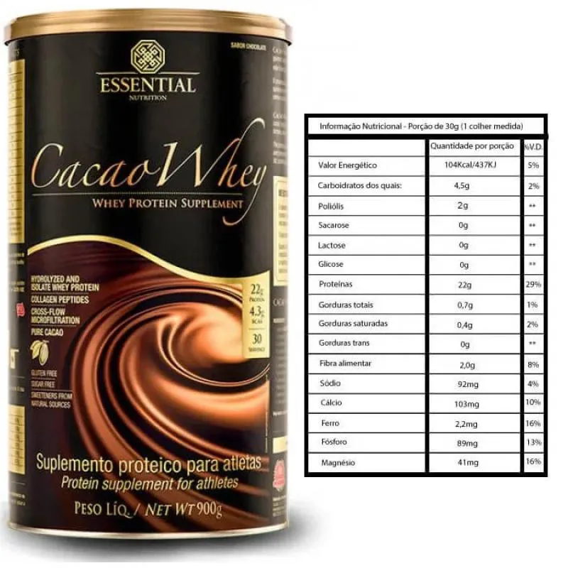 Cacao Whey Proteína Isolada E Hidrolisada - (900G) - (Chocolate) - Essential Nutrition