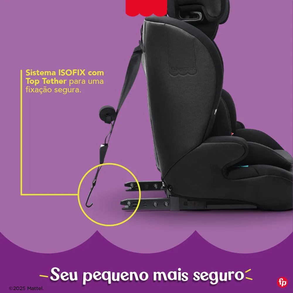 - Fixação ISOFIX + Top Tether: instalação segura e confiável
