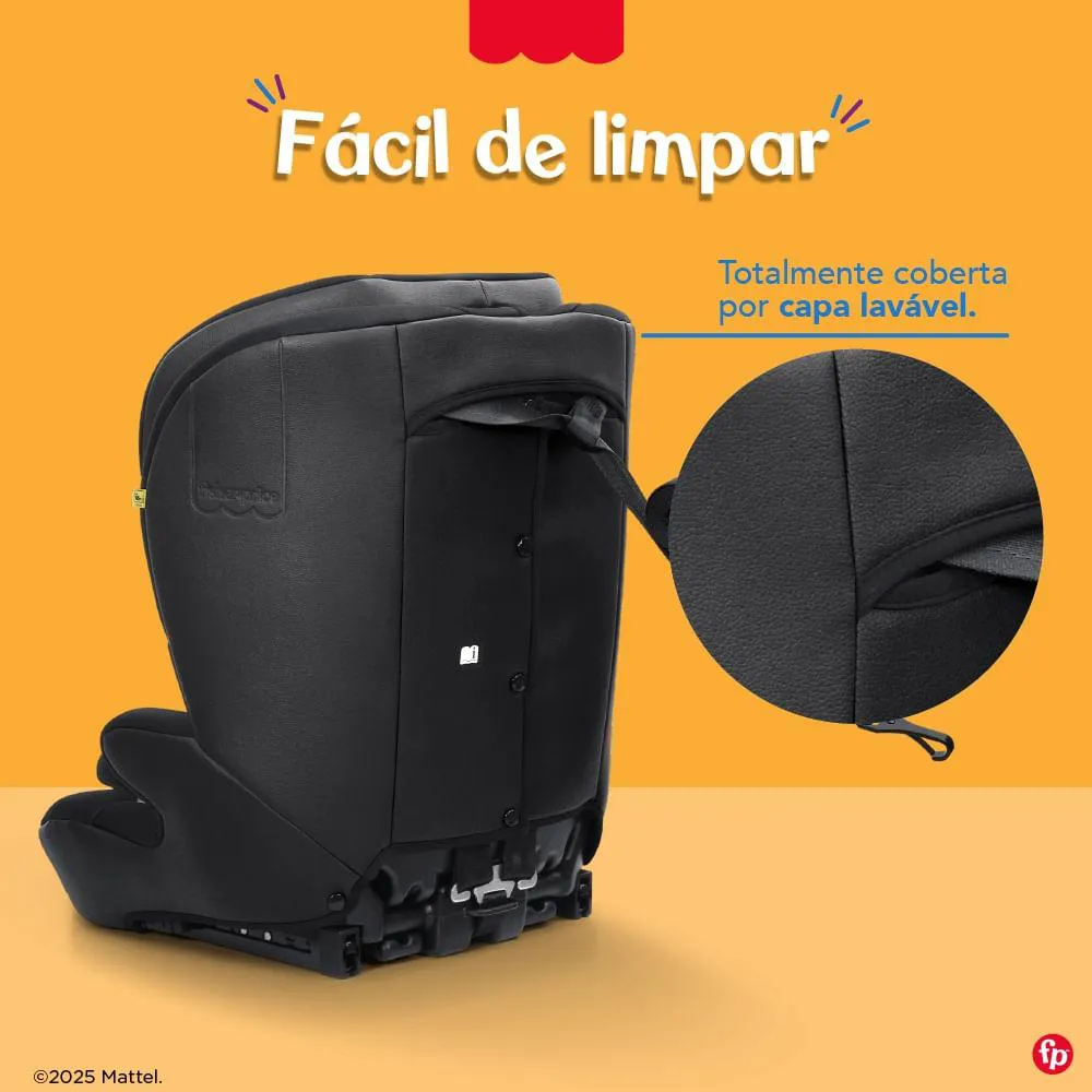 Prendedores do cinto de segurança que facilitam colocar e retirar a criança do assento trazendo mais praticidade no dia a dia, capa em tecido premium respirável e lavável que garante uma manutenção simples e de fácil higienização.