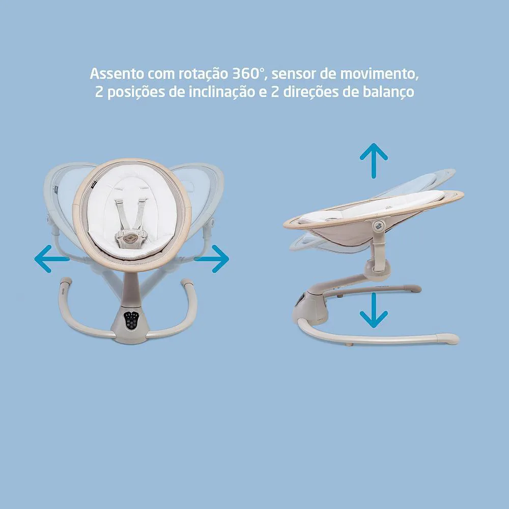 •Balanço Automático: Simula o movimento de embalar dos pais, com 2 direções de balanço e 5 velocidades ajustáveis, ajudando a acalmar o bebê.