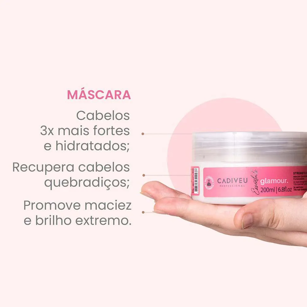 Nova Máscara Glamour com nova fórmula, infundida com Biotina, converte os fios enfraquecidos em cabelos 3x mais fortes e hidratados. Auxilia na manutenção da saúde dos fios, recupera os cabelos quebradiços em fios super macios e brilhantes.