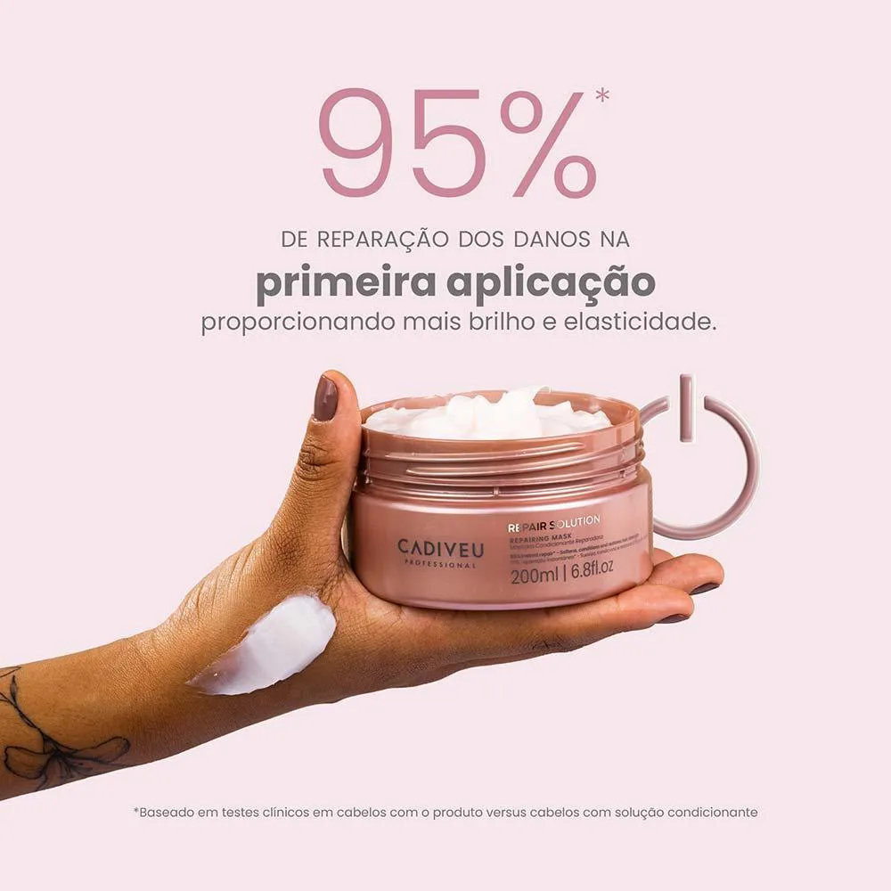 Cadiveu Professional Repair Solution oferece uma solução profissional instantânea para cabelos danificados por processos mecânicos, térmicos ou químicos.