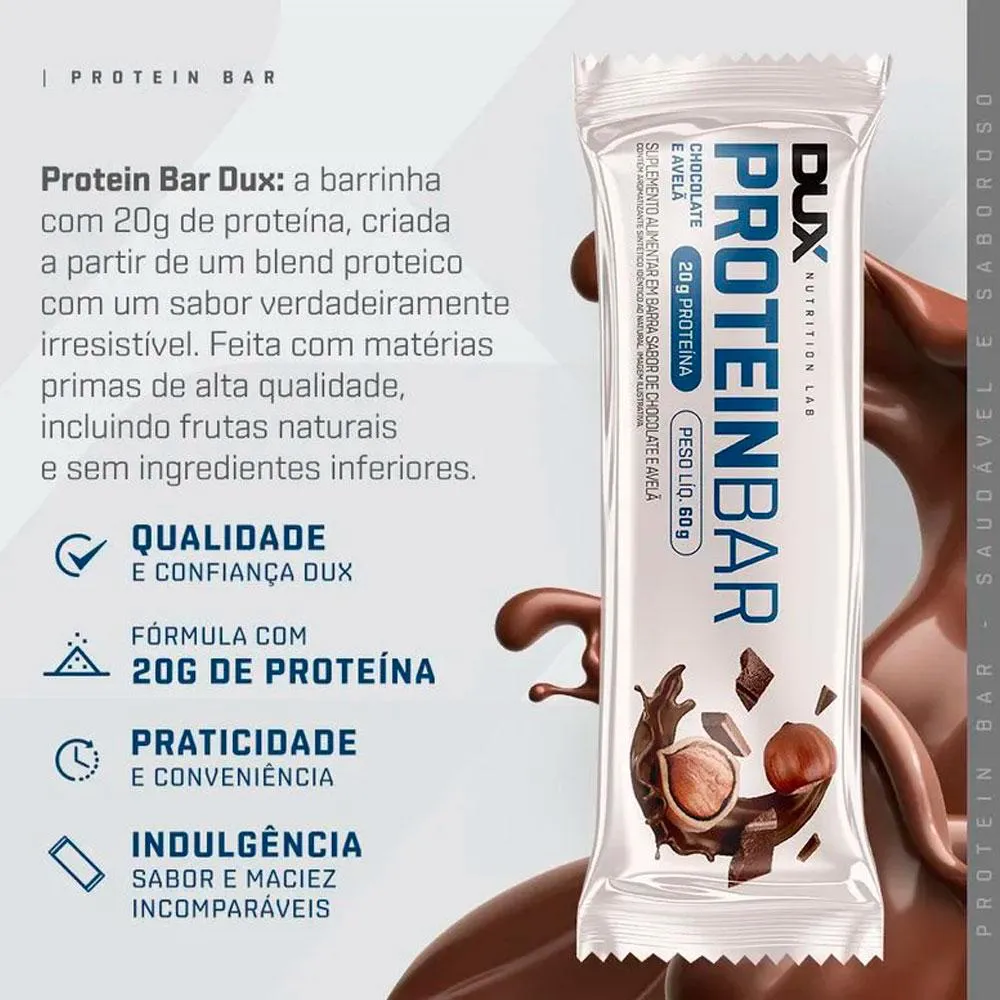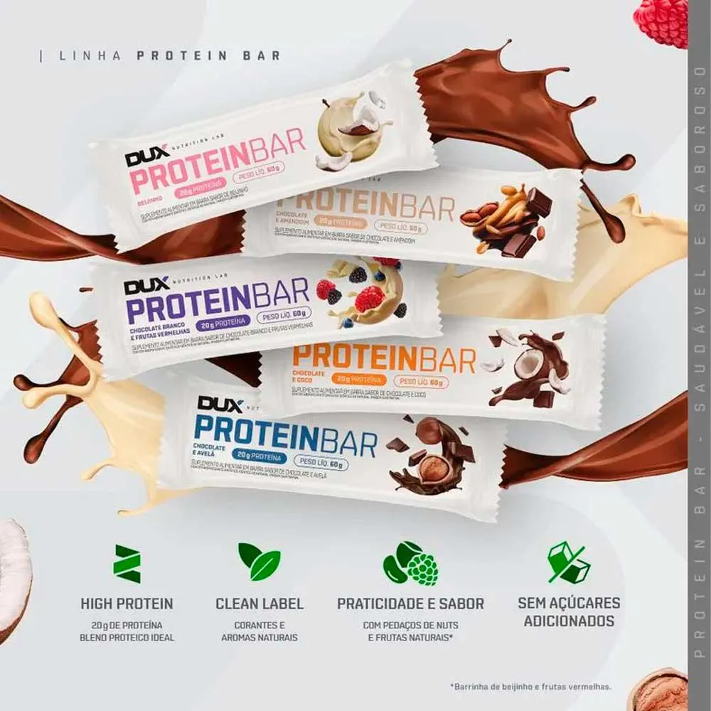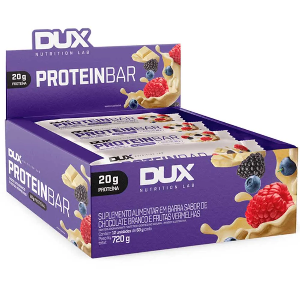 Caixa com 12un Protein Bar - Barra de Proteína - 60g cada - DUX Nutrition Chocolate Branco E Frutas Vermelhas