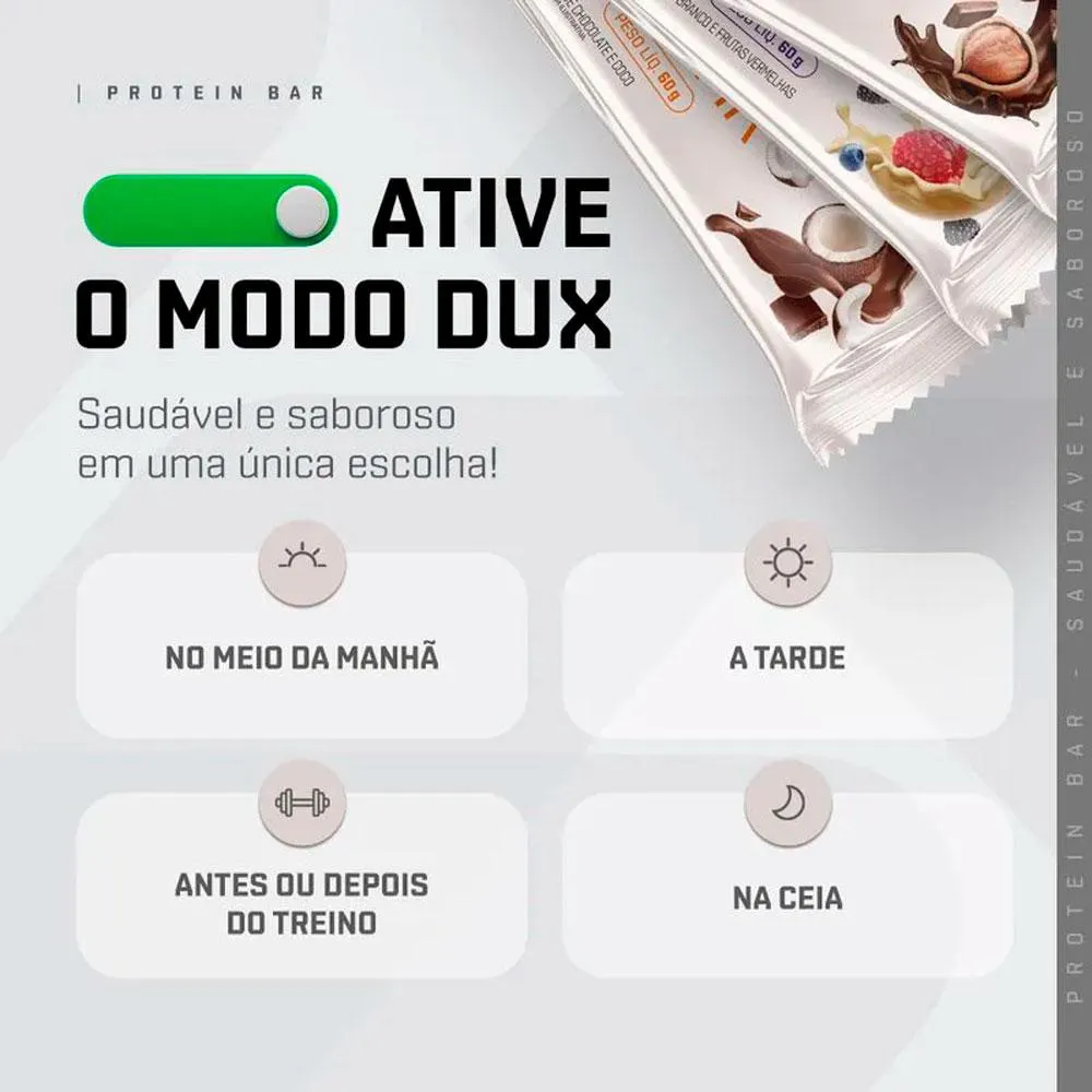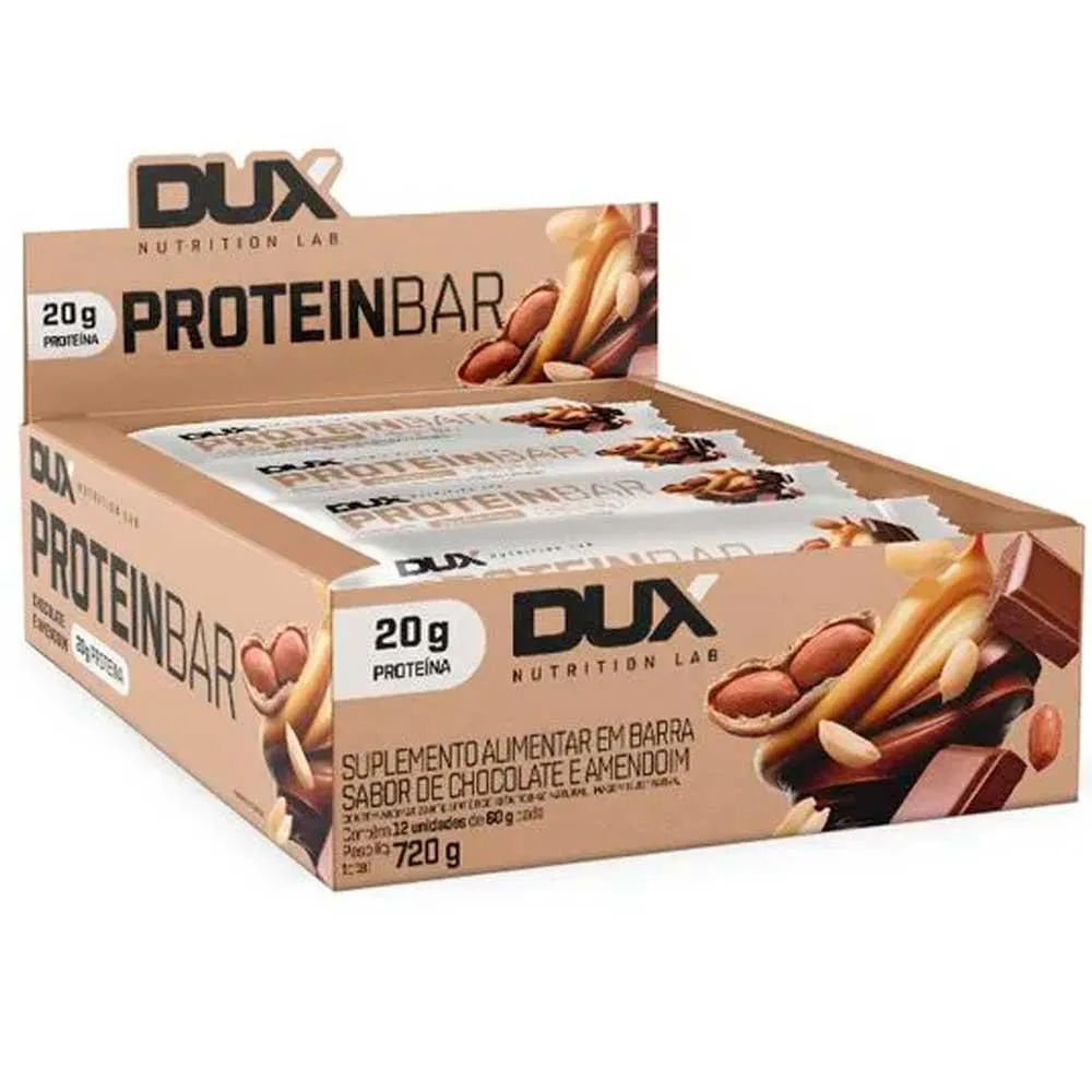 Caixa com 12un Protein Bar - Barra de Proteína - 60g cada - DUX Nutrition Chocolate E Amendoim