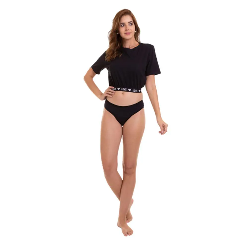 Tecido em contato com a pele (centro da calcinha): 88% poliamida e 12% elastano