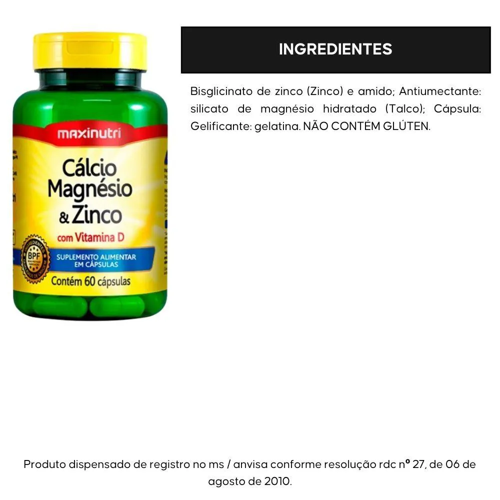 Cálcio, Magnésio e Zinco 600mg 60 cápsulas - Maxinutri