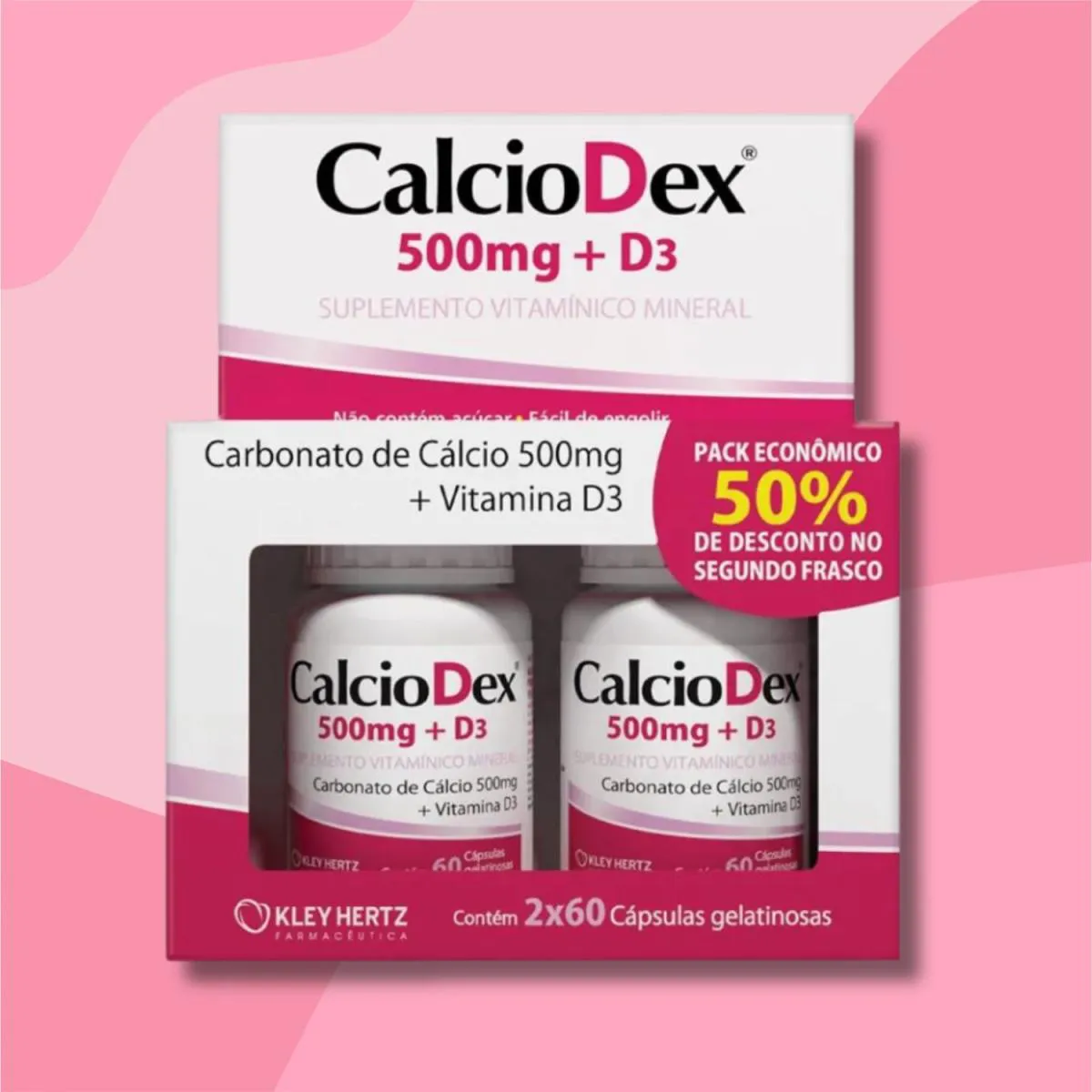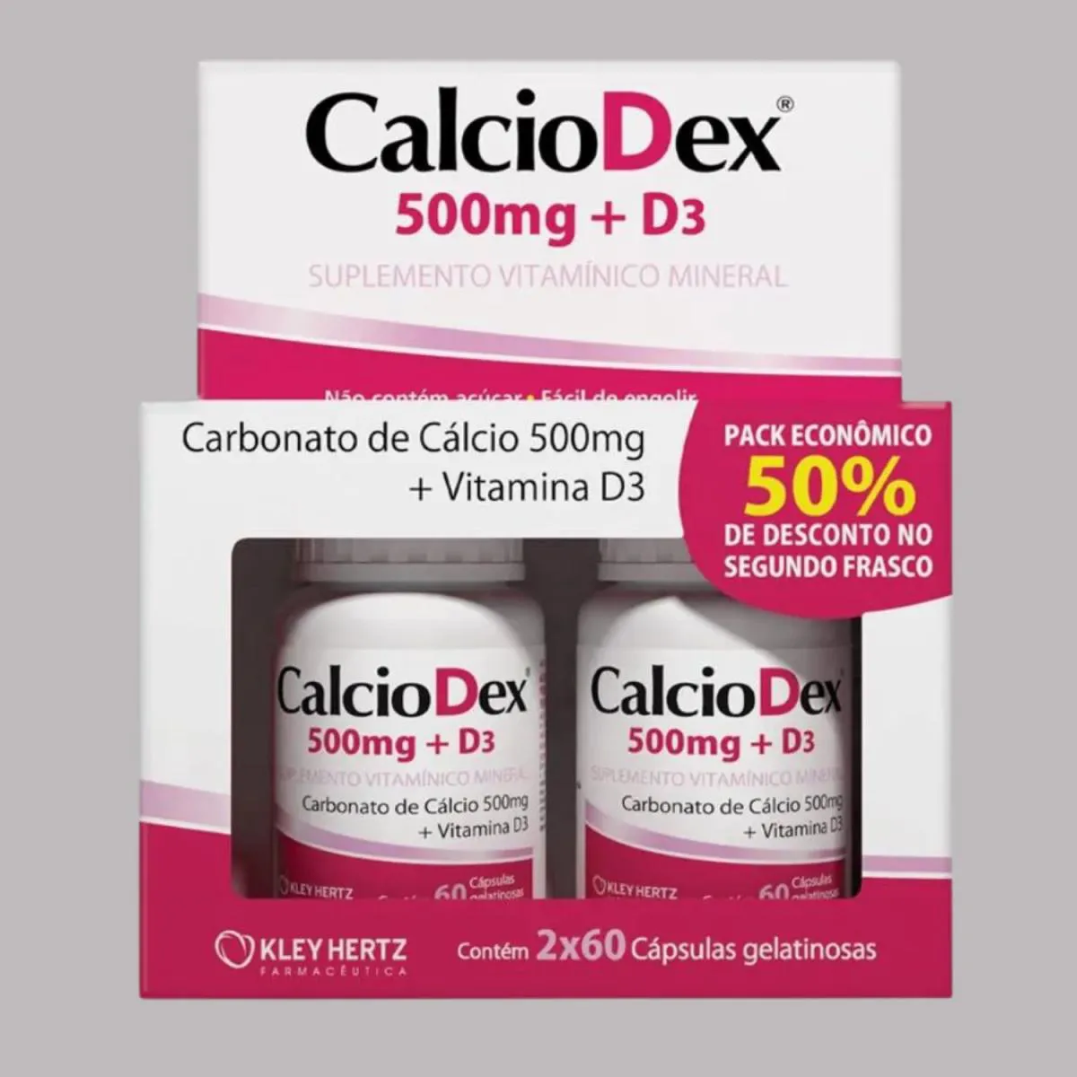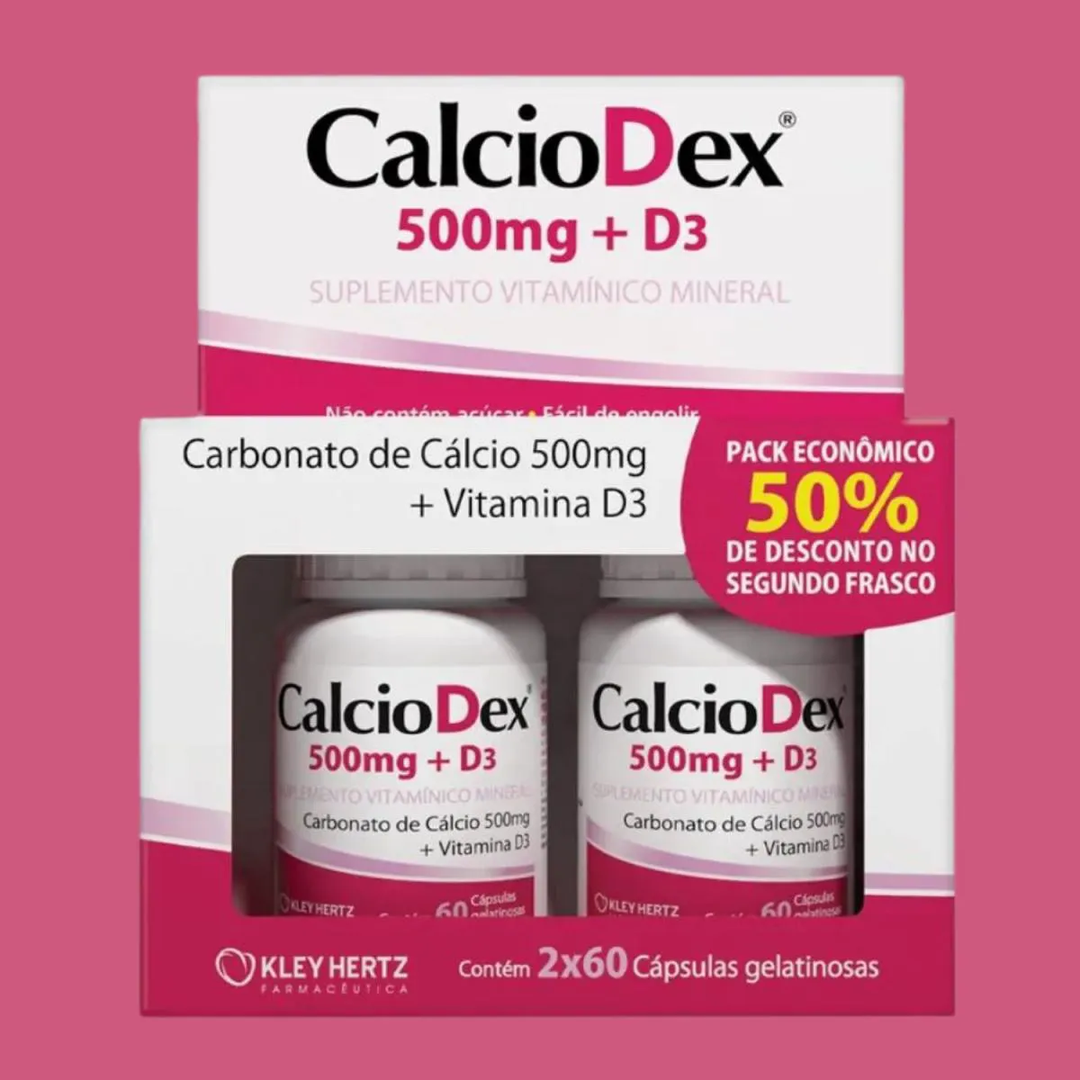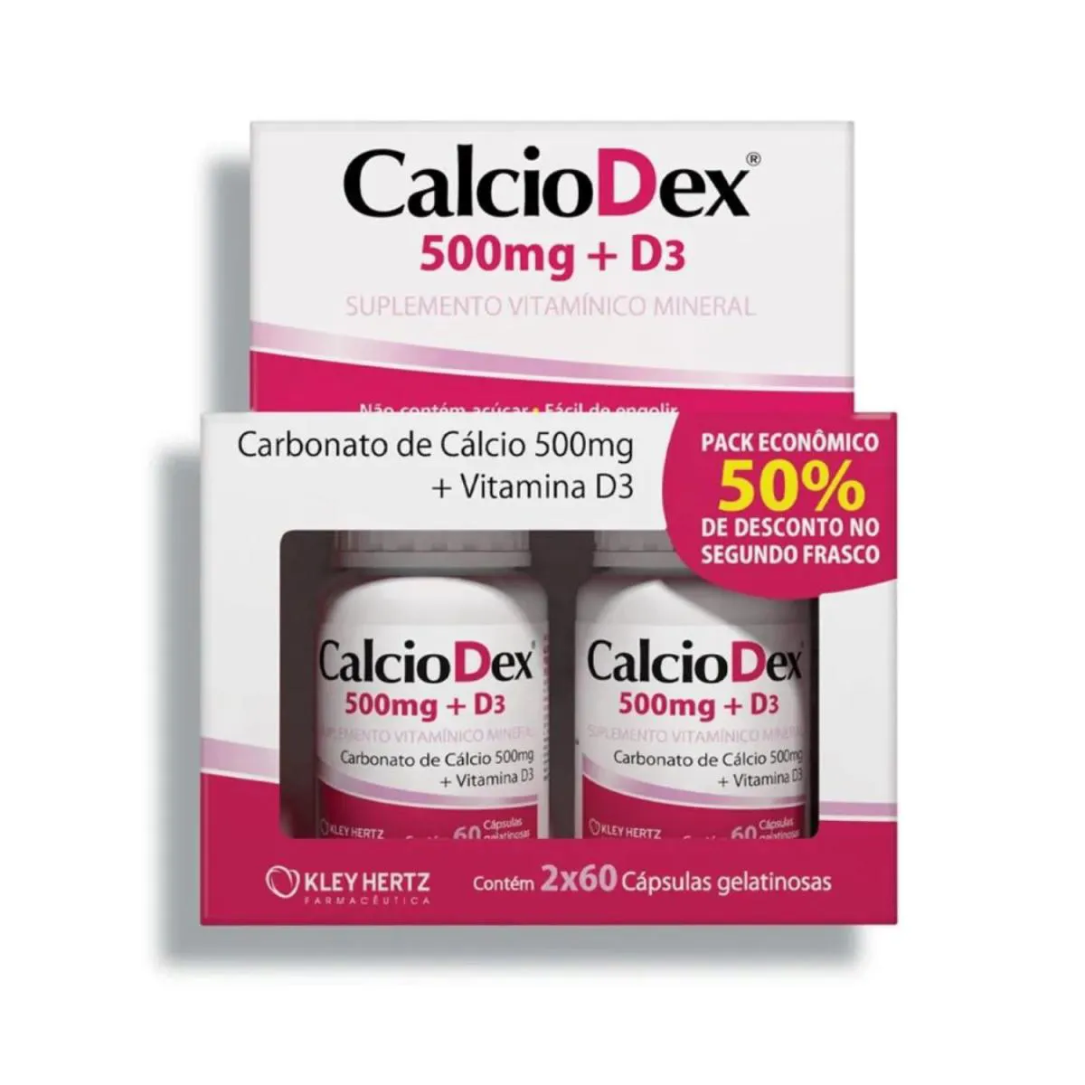 Suplemento Alimentar Calciodex 500mg + Vitamina D3 com 2 unidades de 60 caps cada – Hertz O Calciodex 500mg com D3 da Kley Hertz é um suplemento alimentar completo, formulado para oferecer os benefícios do cálcio aliado à vitamina D3, garantindo maior absorção e aproveitamento pelo organismo. É ideal para quem deseja manter ossos e dentes fortes, além de contribuir para o funcionamento adequado dos músculos e do sistema imunológico.
