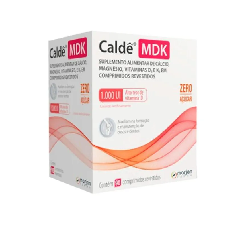 O Caldê MDK é um suplemento vitamínico mineral em comprimidos formulado com Cálcio, Magnésio e Vitaminas D3 e K2. Indicado para adultos, seu consumo deve estar associado a uma alimentação equilibrada e hábitos de vida saudáveis.