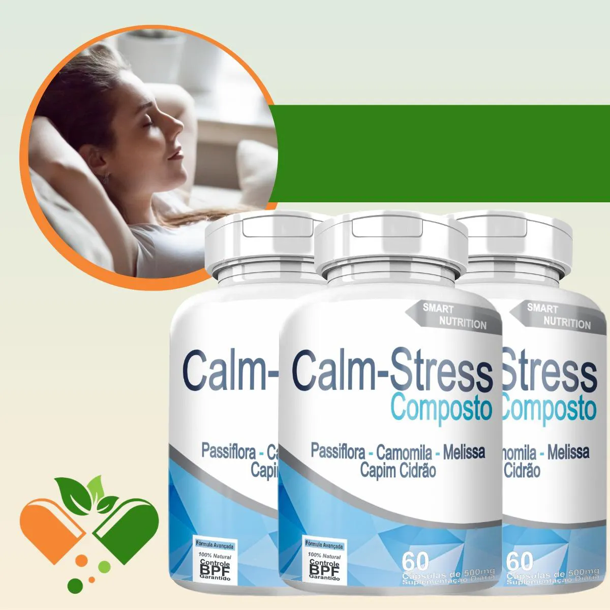Calm-Stress Kit com 3 Potes com Total de 180 Capsulas