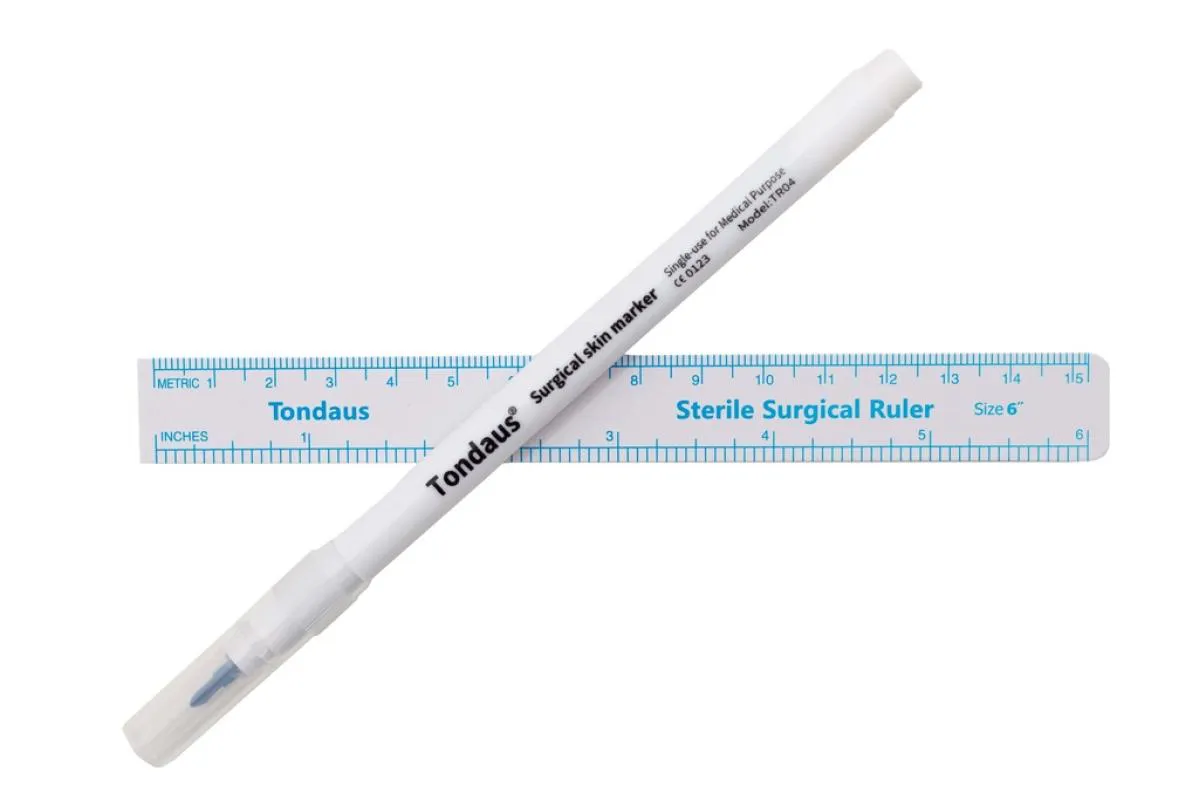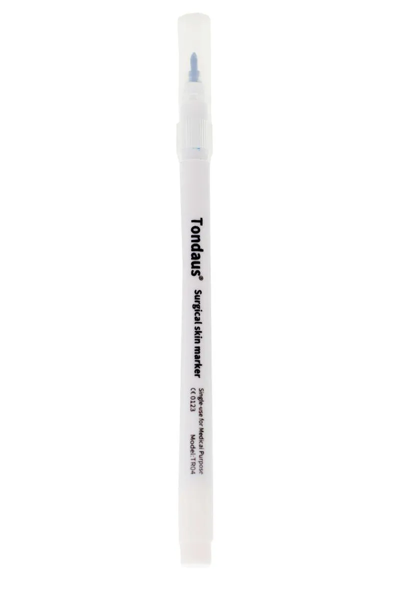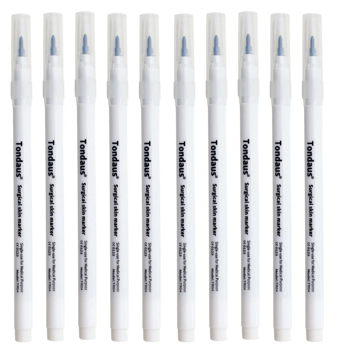 CANETA MARCAÇÃO CIRURGICA TONDAUS PONTA GROSSA 1.0MM TR04 10 UN. A Caneta de Marcação Cirúrgica Tondaus é visível até 10 vezes mais do que a tinta tradicional, eliminando a necessidade de remarcar o paciente na sala de operação. Ideal para procedimentos ortopédicos, espinhais, microblanding, marcação de sobrancelhas, tatuagens, e cirurgias plásticas que requerem marcação extensiva, como elevadores de mama e abdominoplastia. Também é perfeita para lipoaspiração e outros procedimentos que utilizam preparações agressivas como CHG. Indicações: Procedimentos ortopédicos e espinhais, microblanding para marcar sobrancelhas e tatuagens, procedimentos de cirurgia plástica com marcação extensiva (ex: elevadores de mama, abdominoplastia), Lipoaspiração (tumescente). Características: