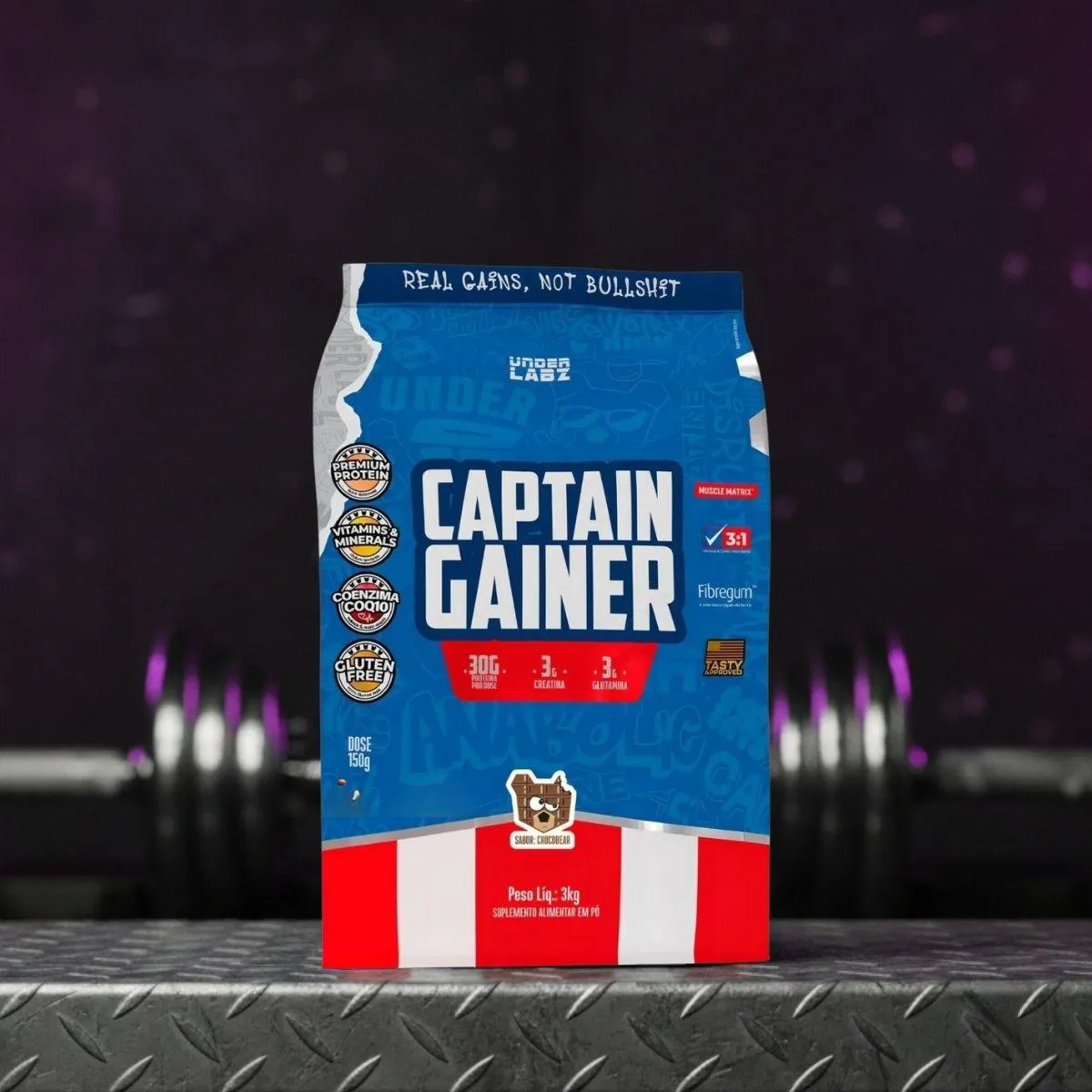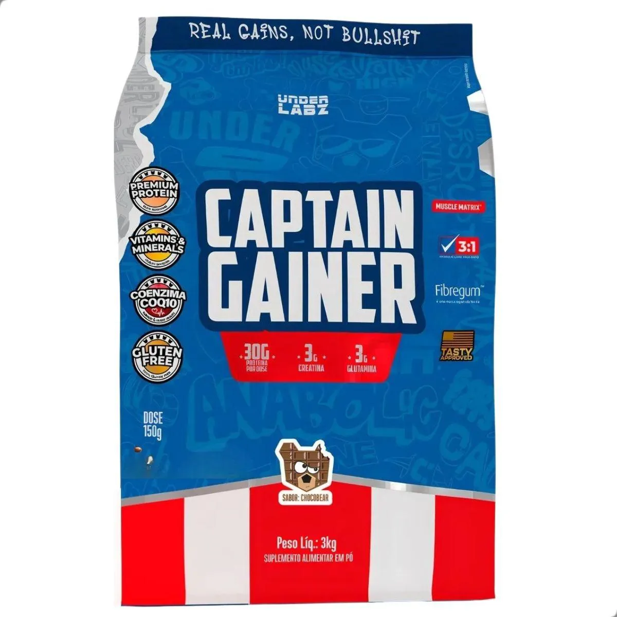 Captain Gainer Hiper Mass Hipercalórico Premium 3Kg Under Labz Chocobear