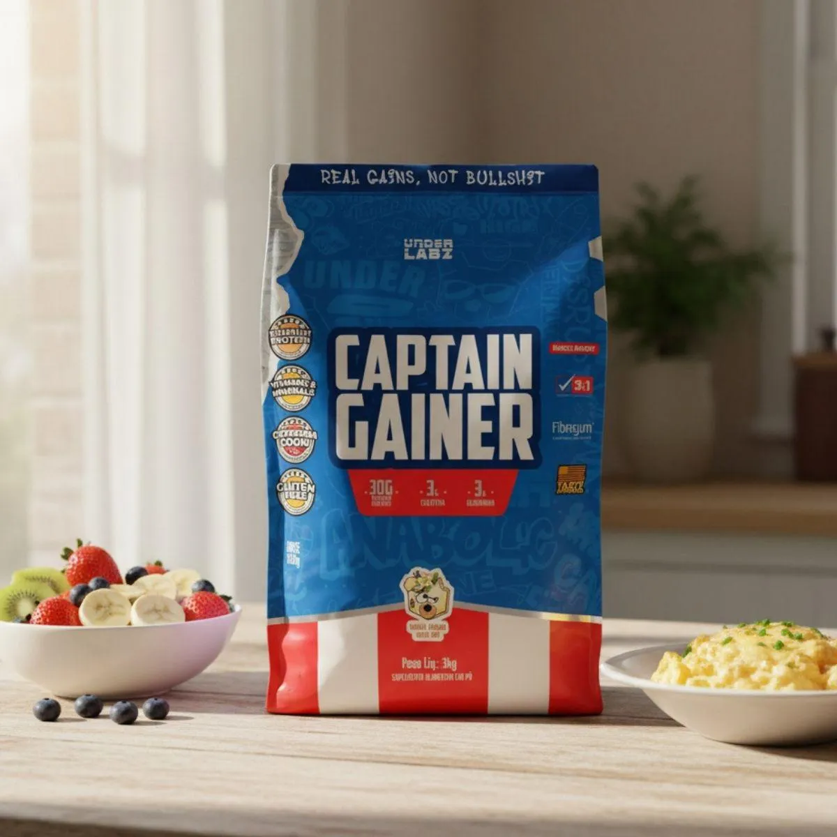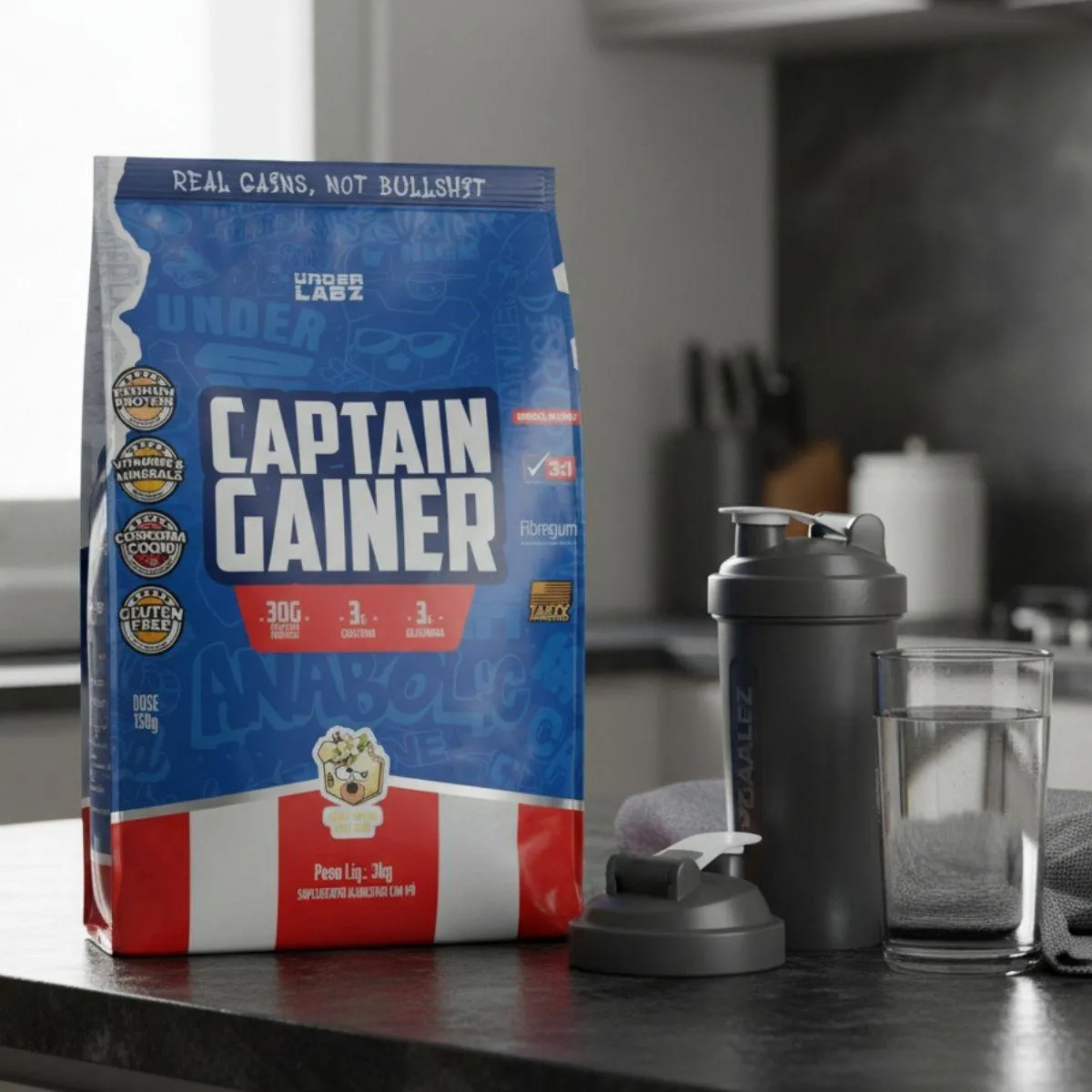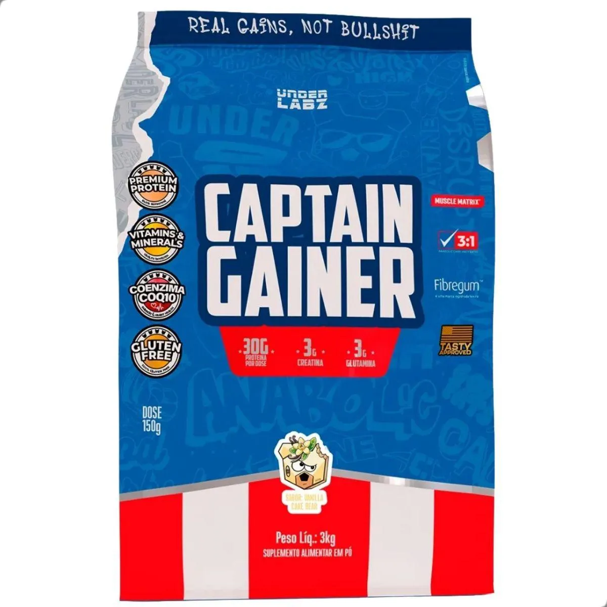Captain Gainer Hiper Mass Hipercalórico Premium 3Kg Under Labz Vanilla Cake Bear