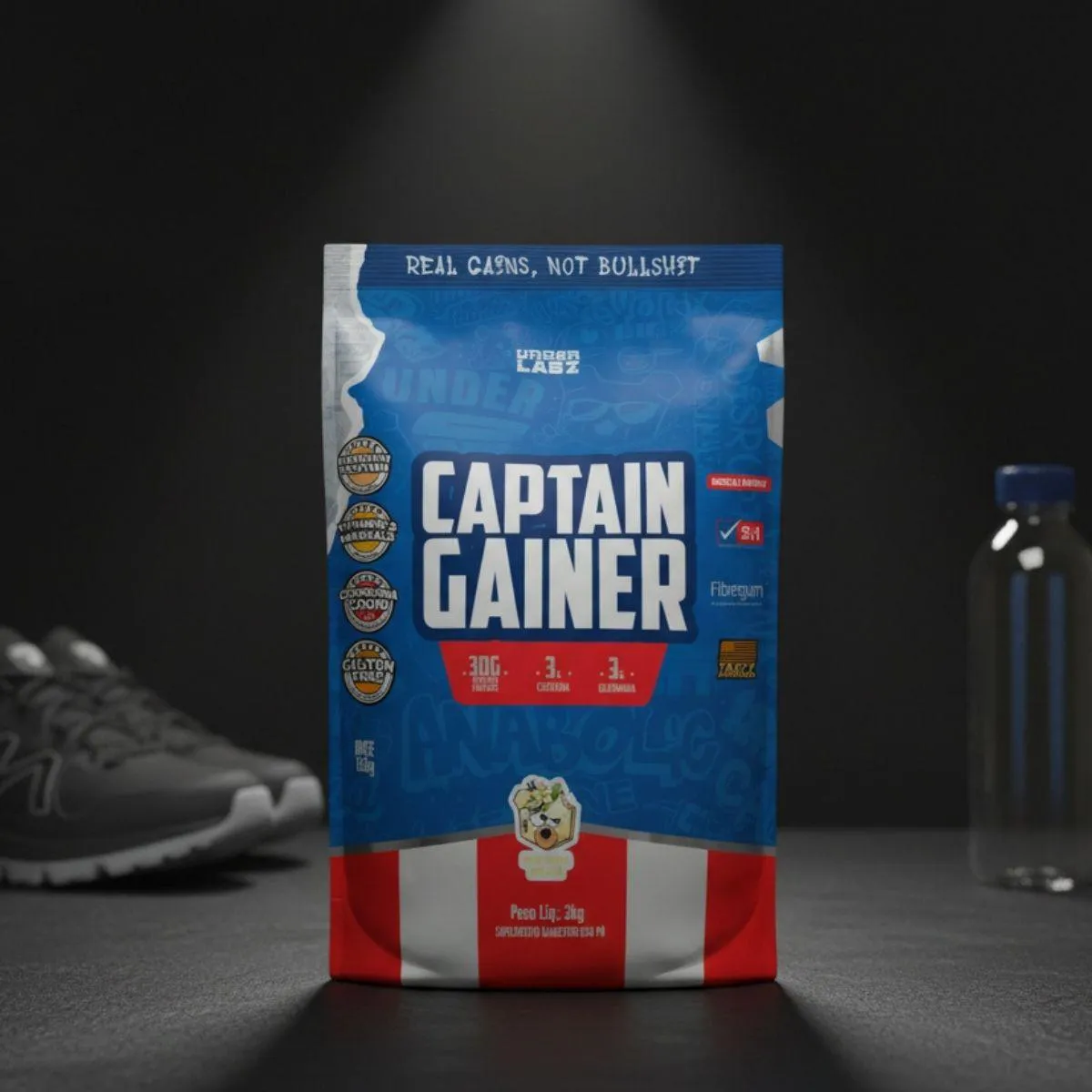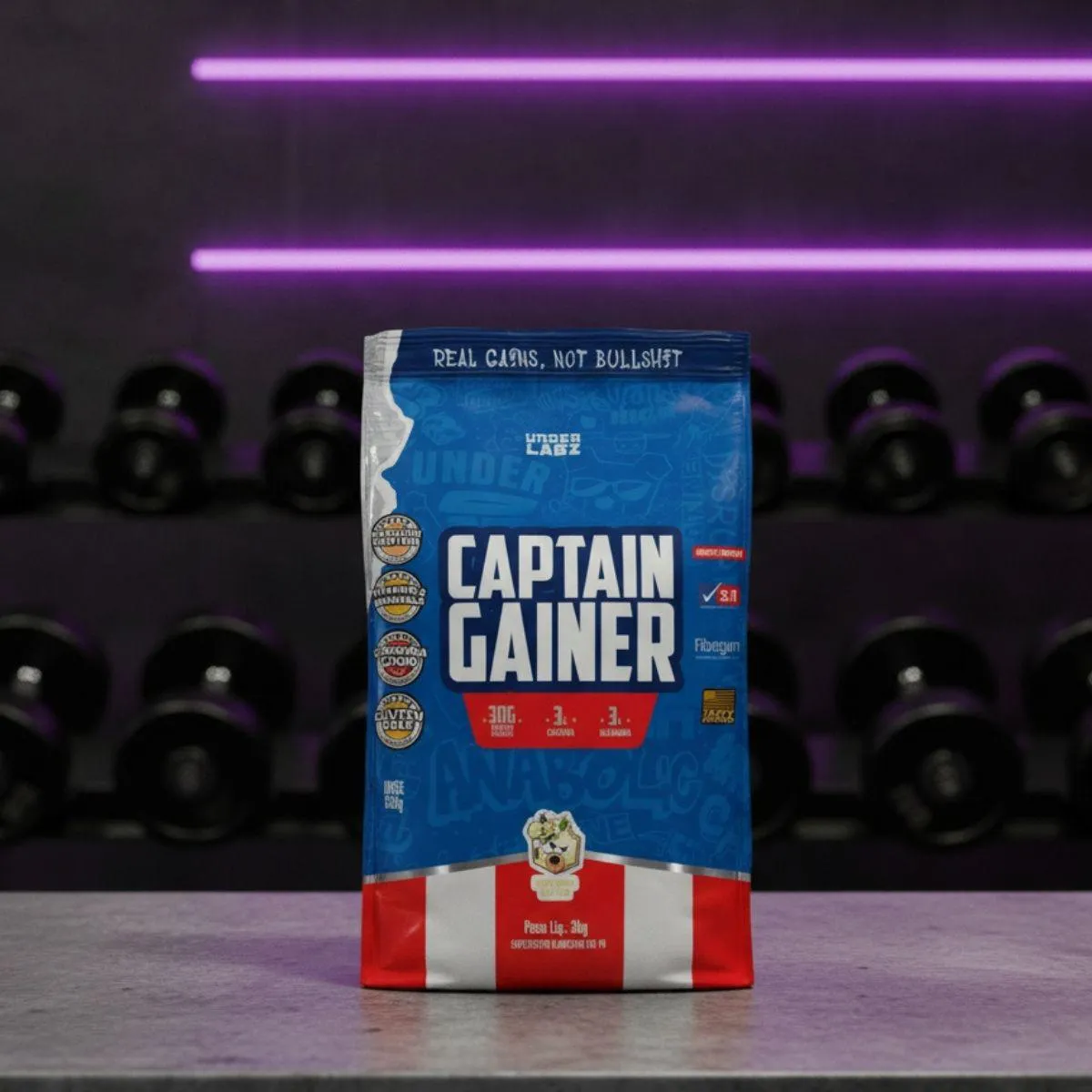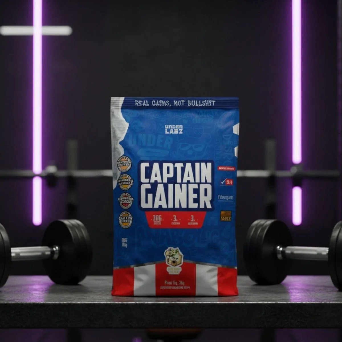 Captain Gainer Hiper Mass Hipercalórico Premium 3Kg Under Labz Vanilla Cake Bear