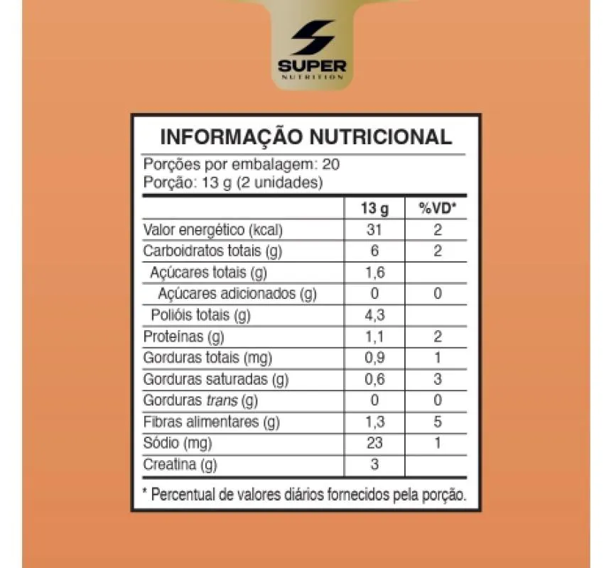 Conheça a Creatina Monohidratada Dado de Caramelo exclusiva da Super Nutrition. Sem Adição de Açúcar, Sem Glúten e Melhora o Desempenho Físico.