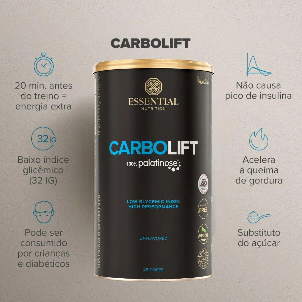 Carbolift 100% Palatinose 900G Energia Essential Nutrition Natural