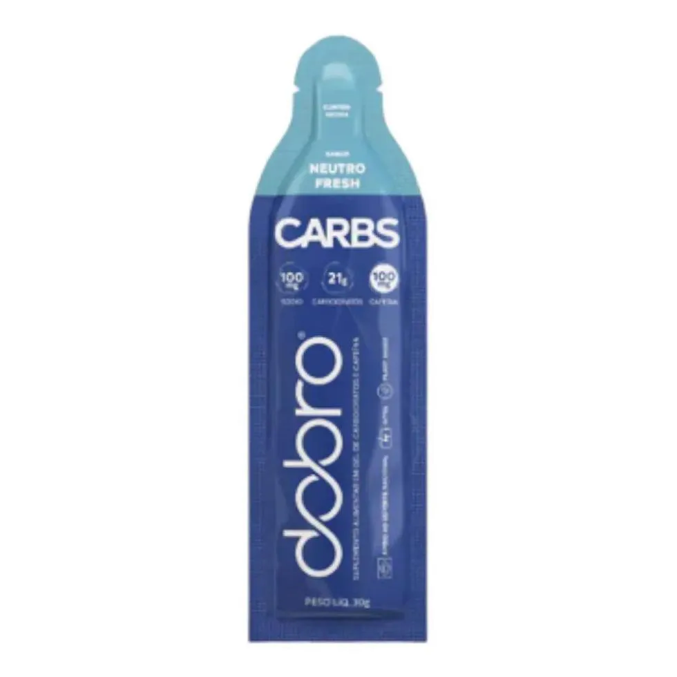 CARBS: O QUE É?O CARBS é o mais novo conceito de gel da Dobro! Um gel de carboidratos que fornece energia rápida de forma descomplicada, além de possuir eletrólitos para otimizar a reidratação e prevenir a fadiga.Com seu sabor e textura leves, ele é ideal para todos os momentos em que você precisar de um up no treino.O QUE TEM NO CARBS?MALTODEXTRINAÉ um carboidrato simples e de rápida absorção, e com isso, ajuda a prevenir que os níveis de glicose caiam e, consequentemente, mantém a energia durante todo o treino.FRUTOSEÉ um carboidrato simples e de baixo índice glicêmico, sendo, portanto, uma fonte de energia de fácil absorção cujo benefício adicional é evitar o aumento exacerbado da glicemia sanguínea.STEVIAAdoçante natural proveniente de uma planta que adoça de 250 a 300 vezes mais que o açúcar tradicional, mas sem agregar calorias e sem alterar os níveis de glicemia e insulina.SÓDIORegula o equilíbrio dos fluidos corporais, além de fazer parte de reações importantes no sistema nervoso, controlando impulsos nervosos, e no sistema musculoesquelético auxiliando na contração muscular. CAFEÍNA: é uma substância psicoativa que age como estimulante do sistema nervoso central, proporcionando diversos benefícios como aumento da energia, melhora da concentração e redução da fadiga