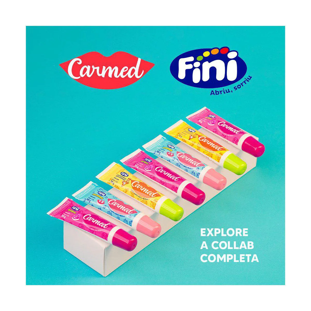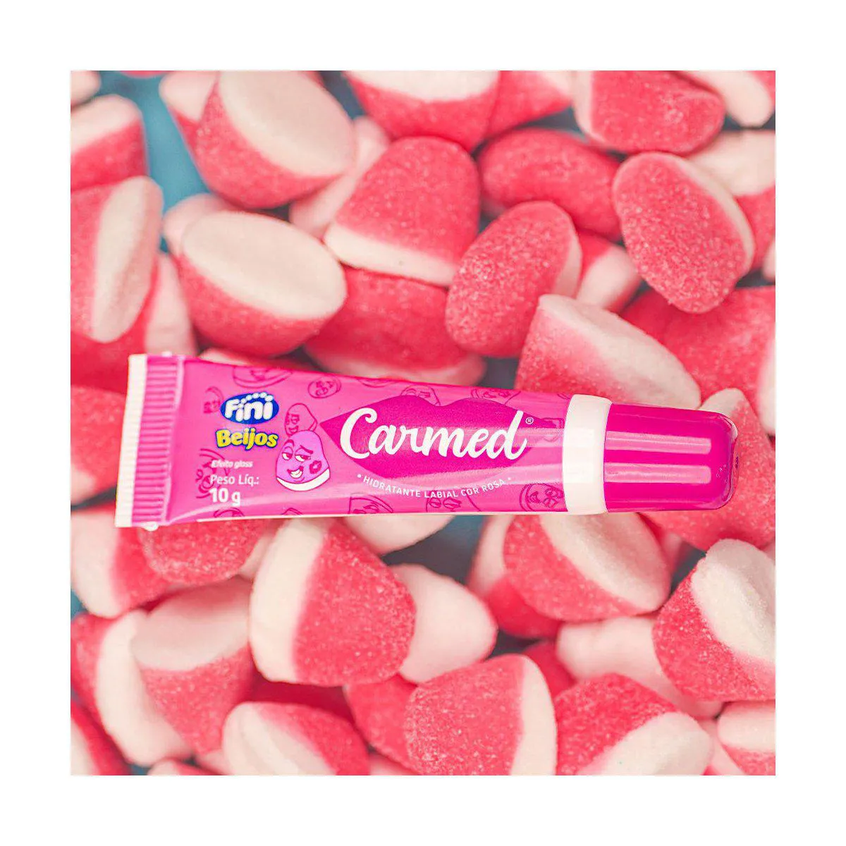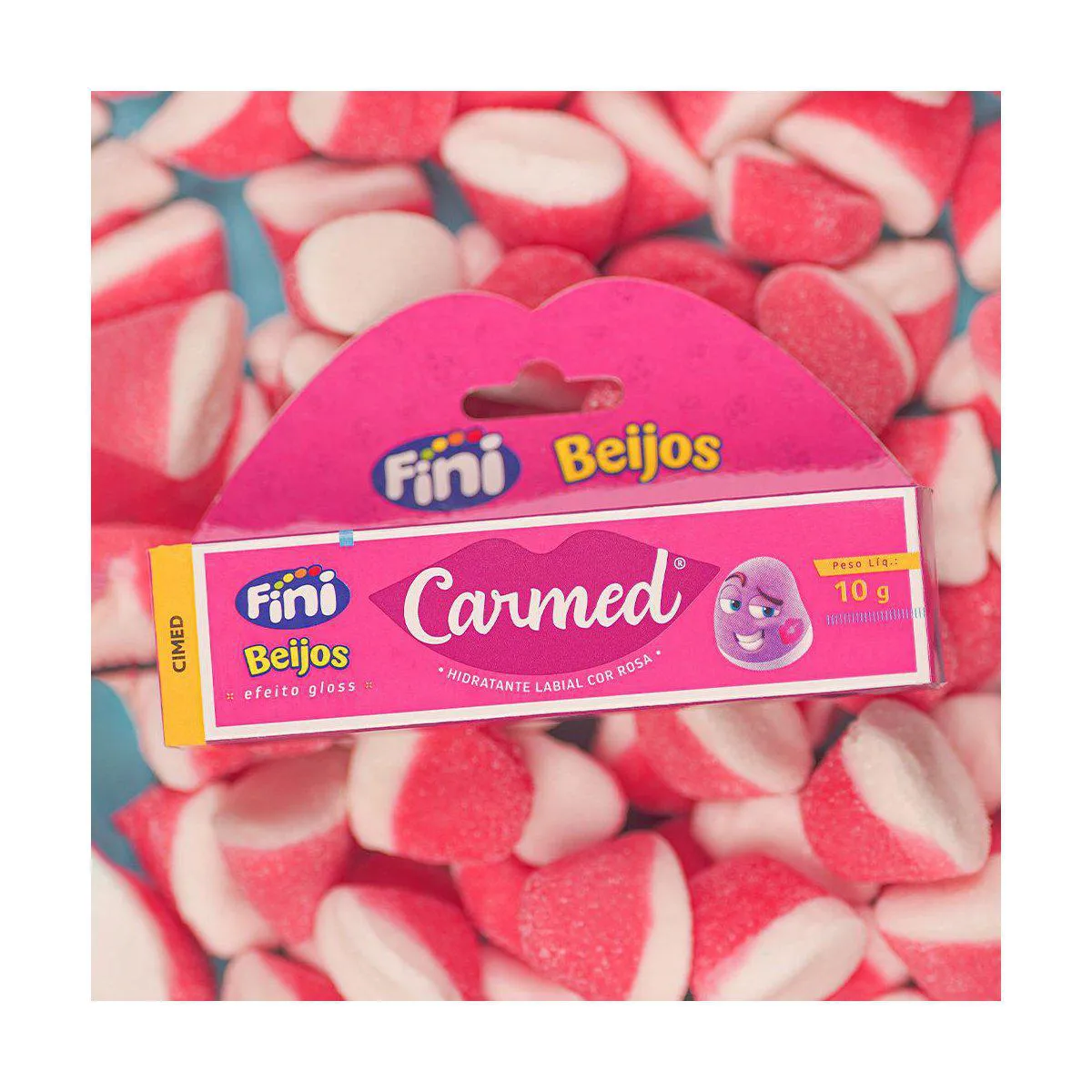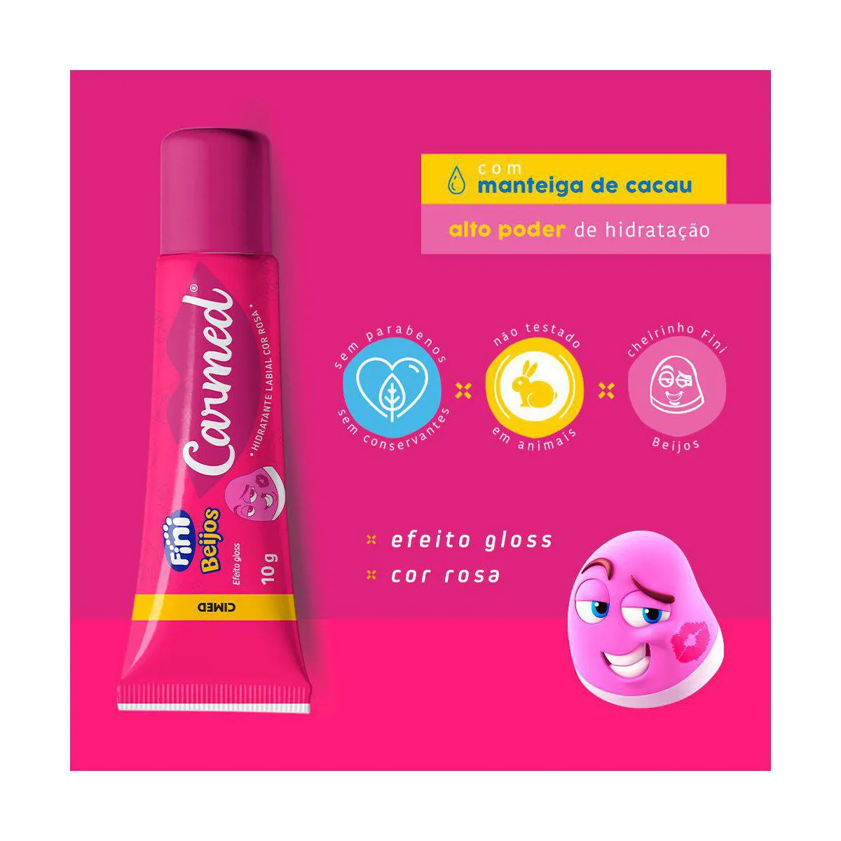 Carmed Fini Beijos é um hidratante labial com alto poder de hidratação e evita rachaduras, deixando os lábios macios e saudáveis. Possui cor rosa, efeito gloss e aroma de Fini Beijos.