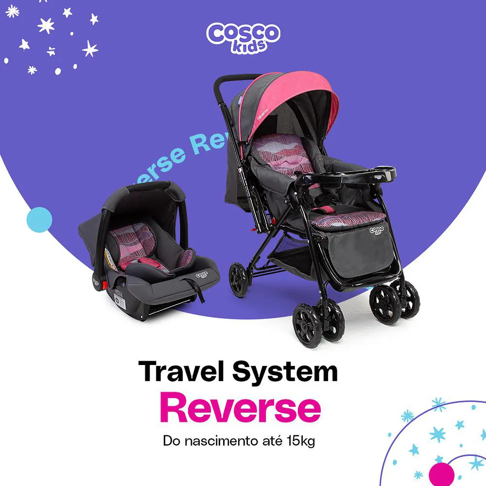 Garanta agora o Travel System Reverse Duo da Cosco Kids e transforme cada passeio com o seu bebê em um momento especial, cheio de conforto, praticidade e segurança!