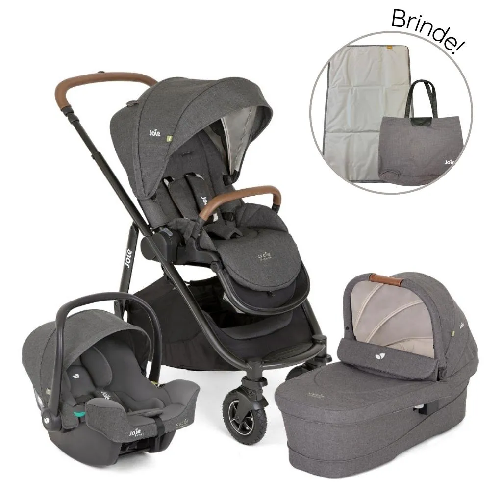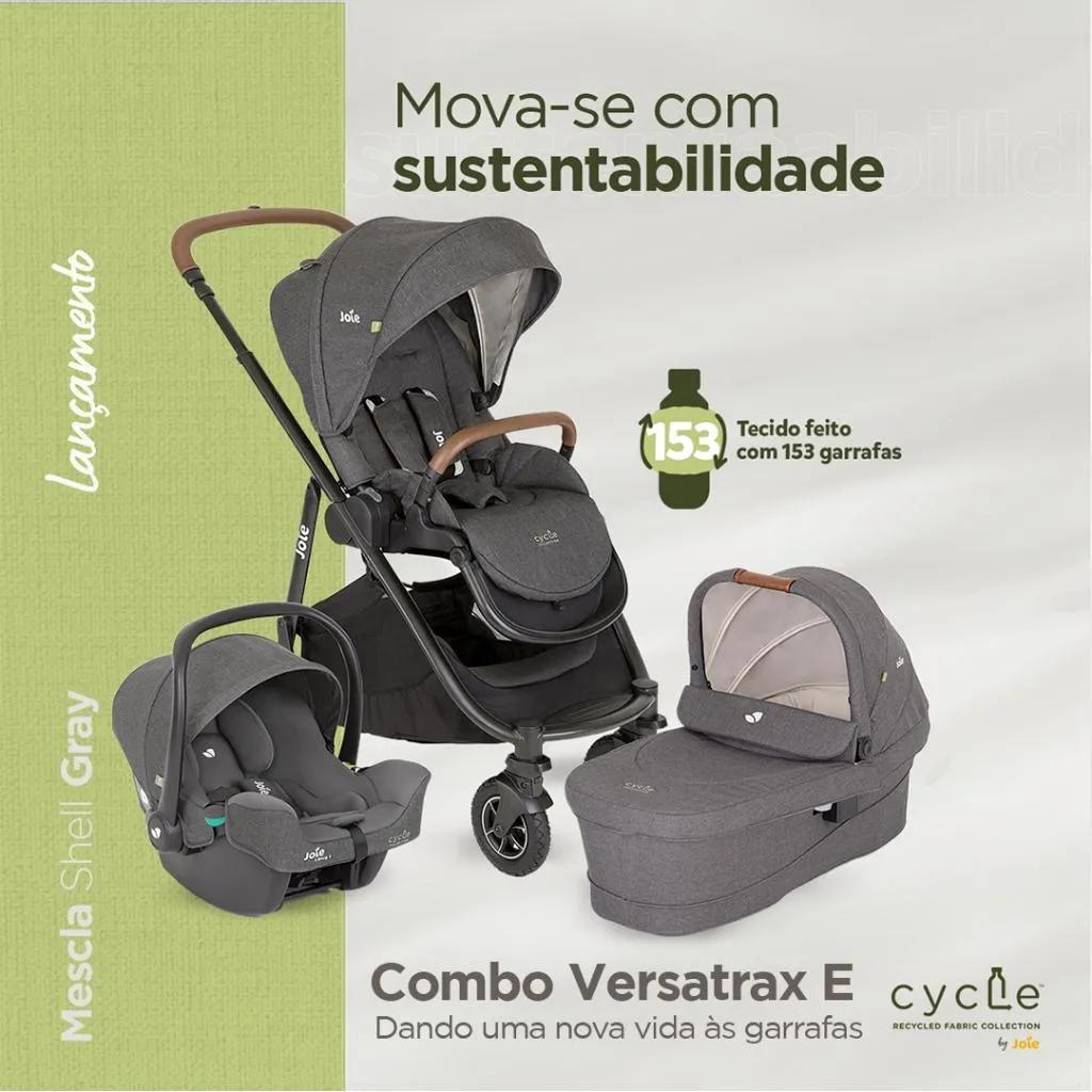 Carrinho de Bebê Travel System Trio Versatrax Cycle Cinza Shellgray + Brinde Exclusivo - Joie