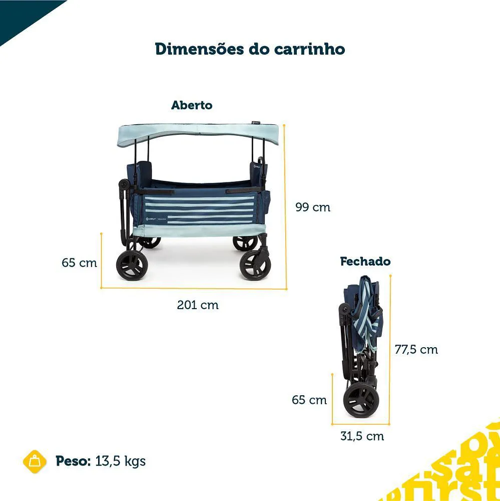 O Carrinho Multiuso Wagon da Safety 1st é o parceiro ideal para quem busca praticidade e segurança em todas as situações. Com capacidade para até 65 kg, este carrinho é perfeito para carregar tudo o que você precisa, seja na praia, no parque ou em casa, de forma organizada e eficiente.