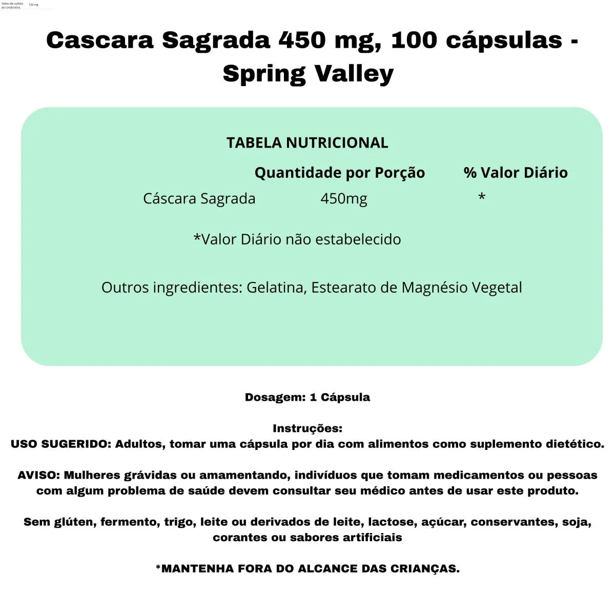 Cascara Sagrada 450 Mg, 100 Cápsulas - Spring Valley