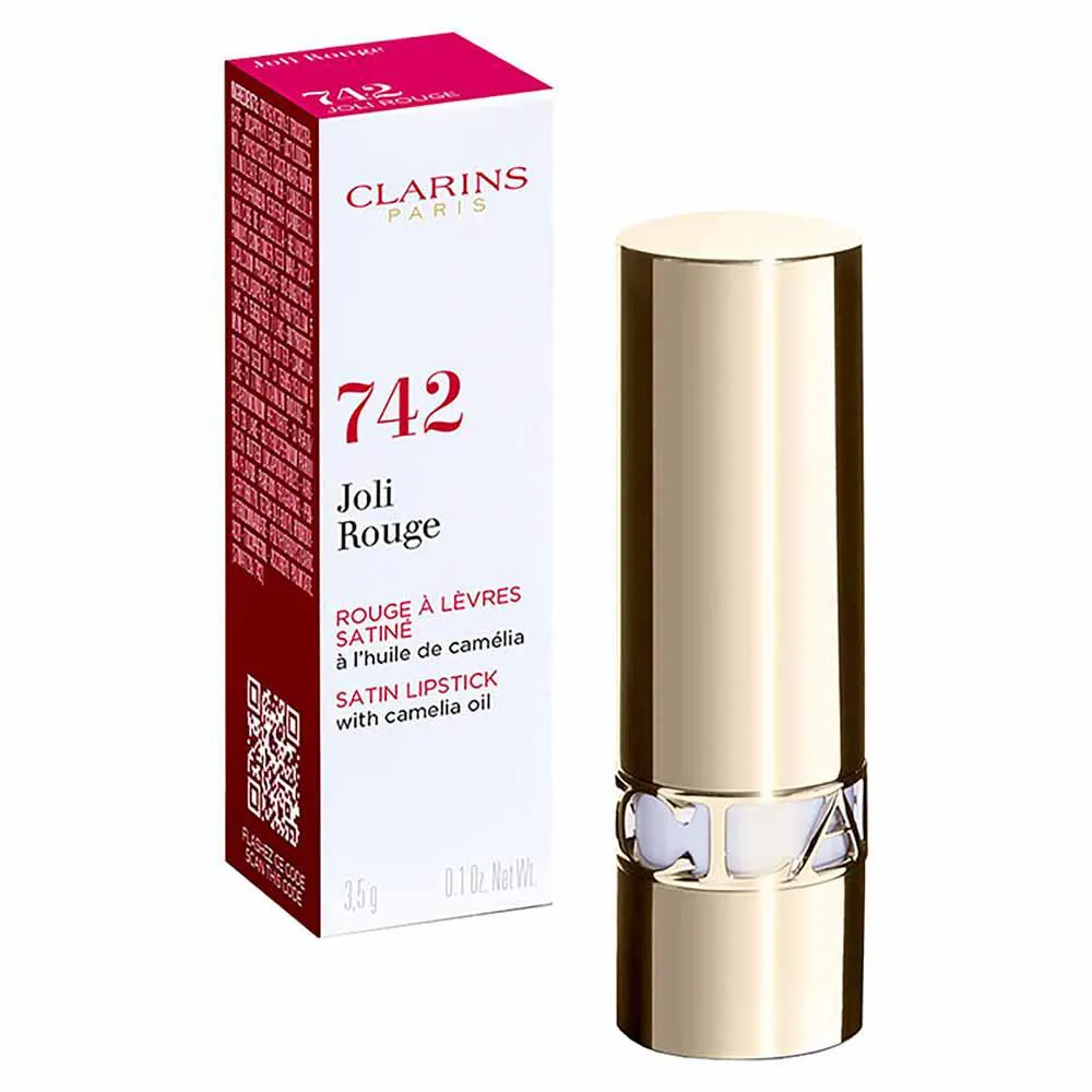 Um trio de elegantes estojos de batom recarregáveis nas cores vermelho (Joli Rouge Velvet) , dourado (Joli Rouge Satin) e branco (Joli Rouge Shine) .