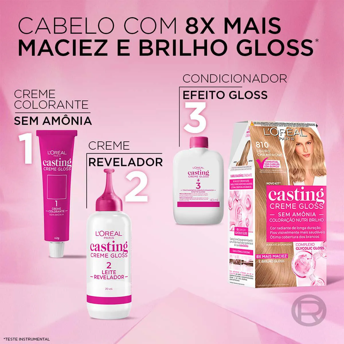 O que é: Casting Creme Gloss é a coloração sem amônia de L'Óreal Paris que garante 4 vezes mais brilho gloss para os fios. Casting Creme Gloss pode ser usado até em cabelos com química.