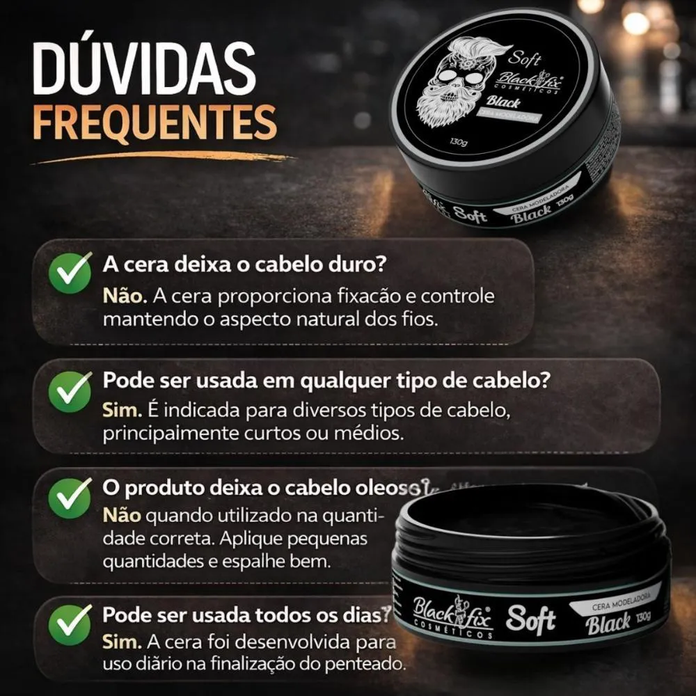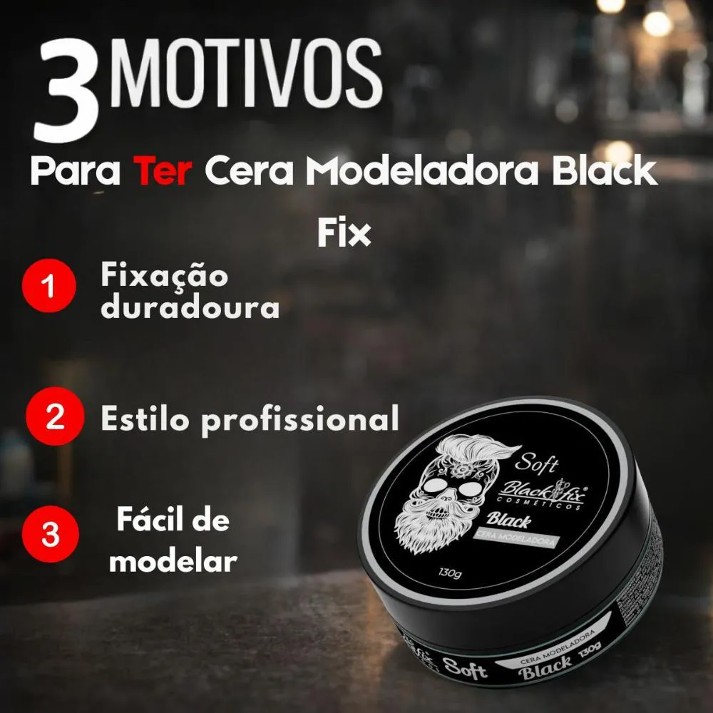 A Cera Modeladora Black Fix Soft Black 130g é a solução ideal para quem busca um penteado com fixação e um toque de cor. Desenvolvida para modelar e estilizar os cabelos, esta cera proporciona um acabamento sofisticado e duradouro, perfeito para realçar o visual com praticidade.Benefícios Principais