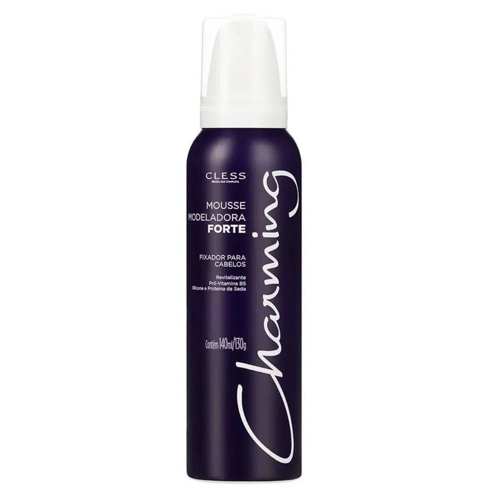 Mousse modeladora Charming forte, proporciona fixação forte com efeito duradouro, ideal para preparação de penteados, os fios ficam encorpados favorecendo a modelagem perfeita para modelar, definir, estilizar e reduzir ou proporcionar volume.