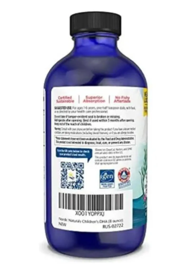 Dosagem: aprox. 2,5 ml Instruções:USO SUGERIDO: Para crianças a partir de 1 ano, tome meia colher de chá (aprox. 2,5 ml) diariamente, com alimentos ou conforme indicado por seu profissional de saúde. AVISO: Consulte um médico antes de dar este produto à criança caso ela tenha um problema de saúde conhecido ou esteja tomando medicamentos (inclusive anticoagulantes). Não contém glúten, derivados de leite, cores ou sabores artificiais. *MANTENHA FORA DO ALCANCE DAS CRIANÇAS.